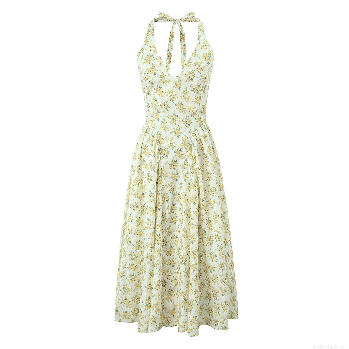 • Women's Sexy Floral Halter Midi Dress Summer Y2K V-Neck Backless Sleeveless Cami Dress With Bow Tie Polyester Vacation Streetwear