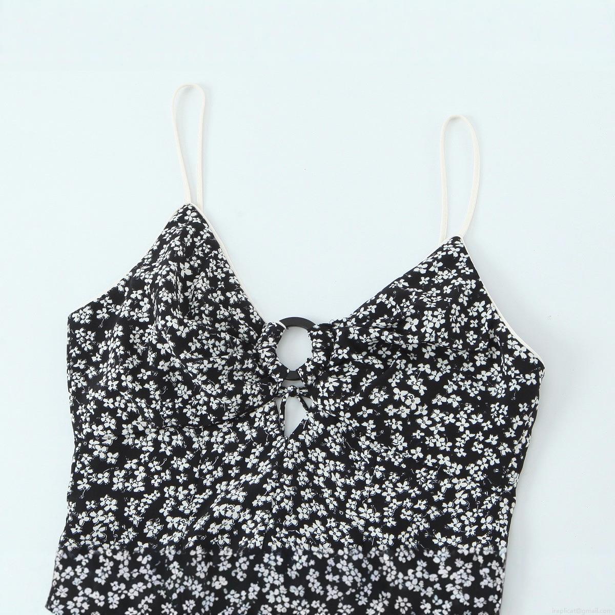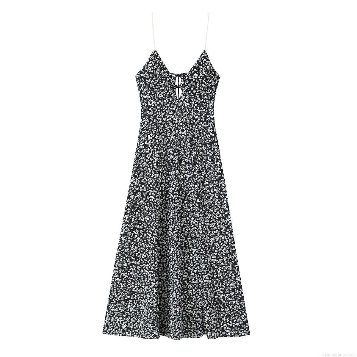 • Women's Sexy Floral Midi Cami Dress Backless V-Neck A-Line Polyester Street Style Tie-Front Cutout Evening Party Vacation Sundress