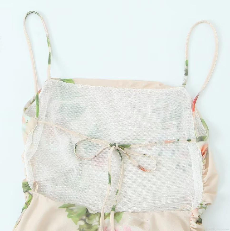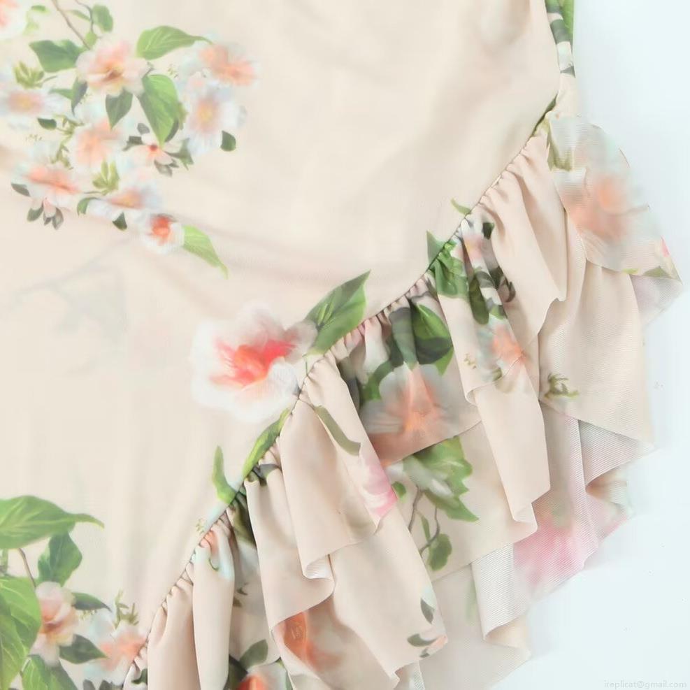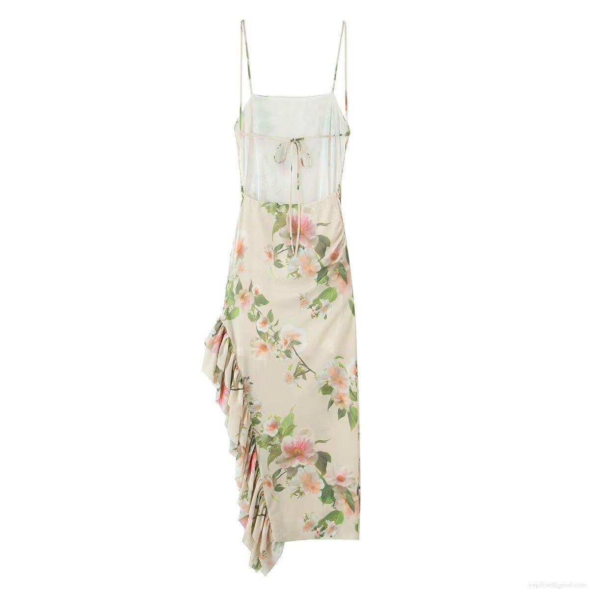 Floral Pattern, Ruffles, Plants And Flowers, Backless, Layered Decoration, Irregular Hem, Side Pleats