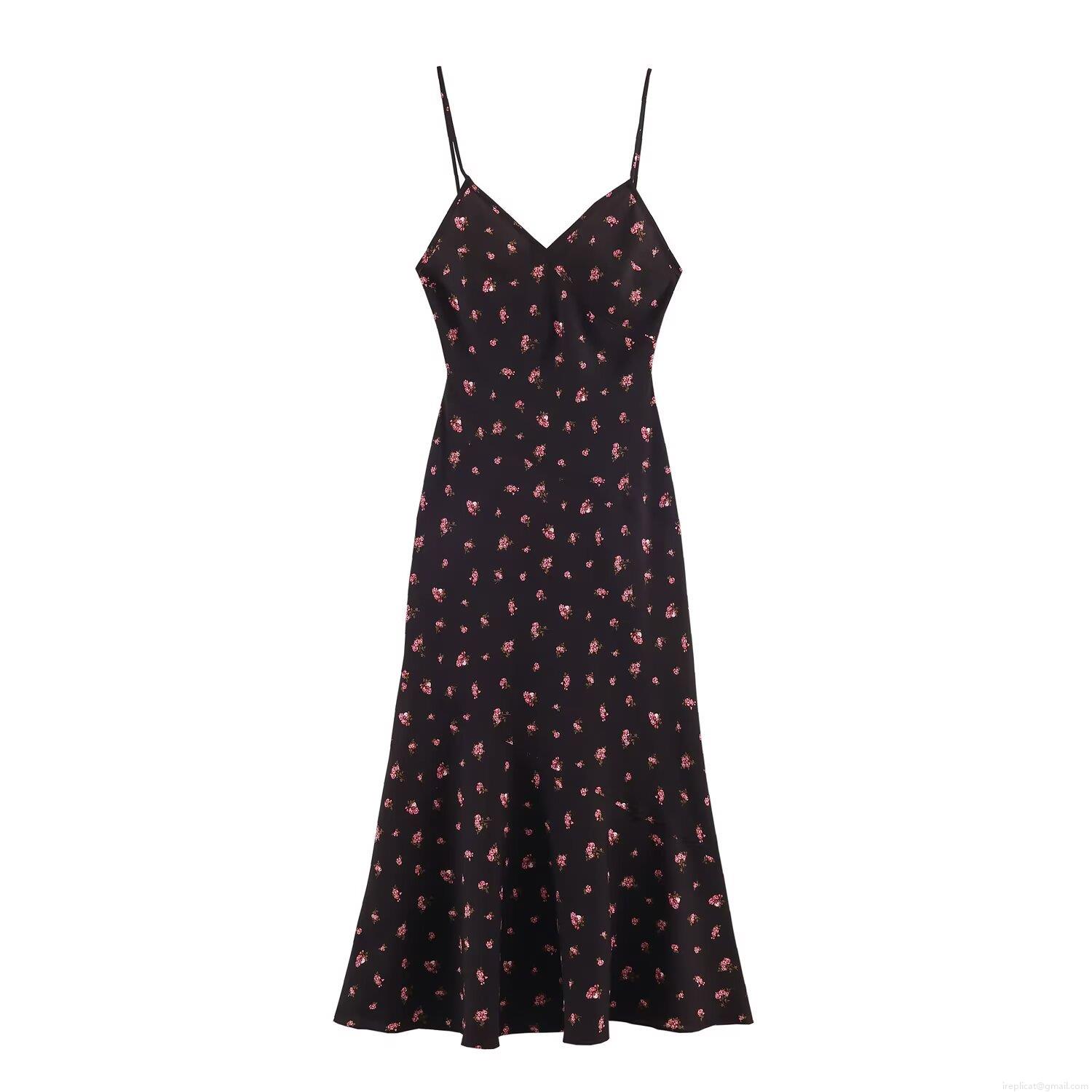 • Women's Sexy Floral Print Camisole Midi Dress V Neck Sleeveless Polyester Summer Beach Casual Streetwear Dress For Lady