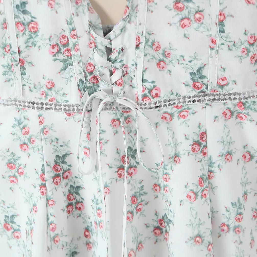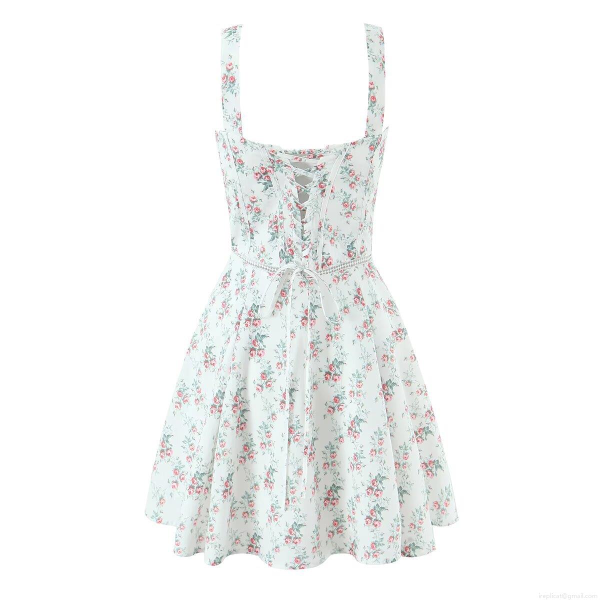• Women's Sexy Floral Printed Fishbone Tie Up Waist Midi Dress Spaghetti Strap White Rose Print Sleeveless Backless A-Line Summer Vacation Party Slim Fit Nylon Blend Dress