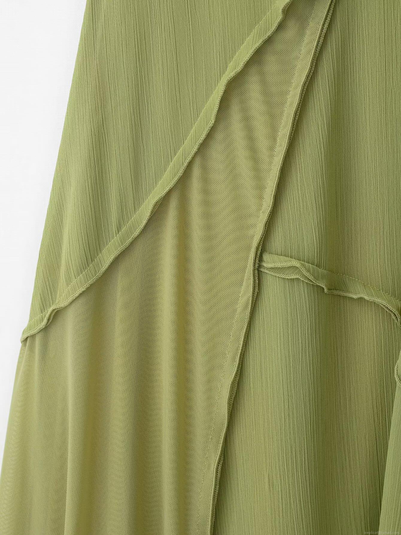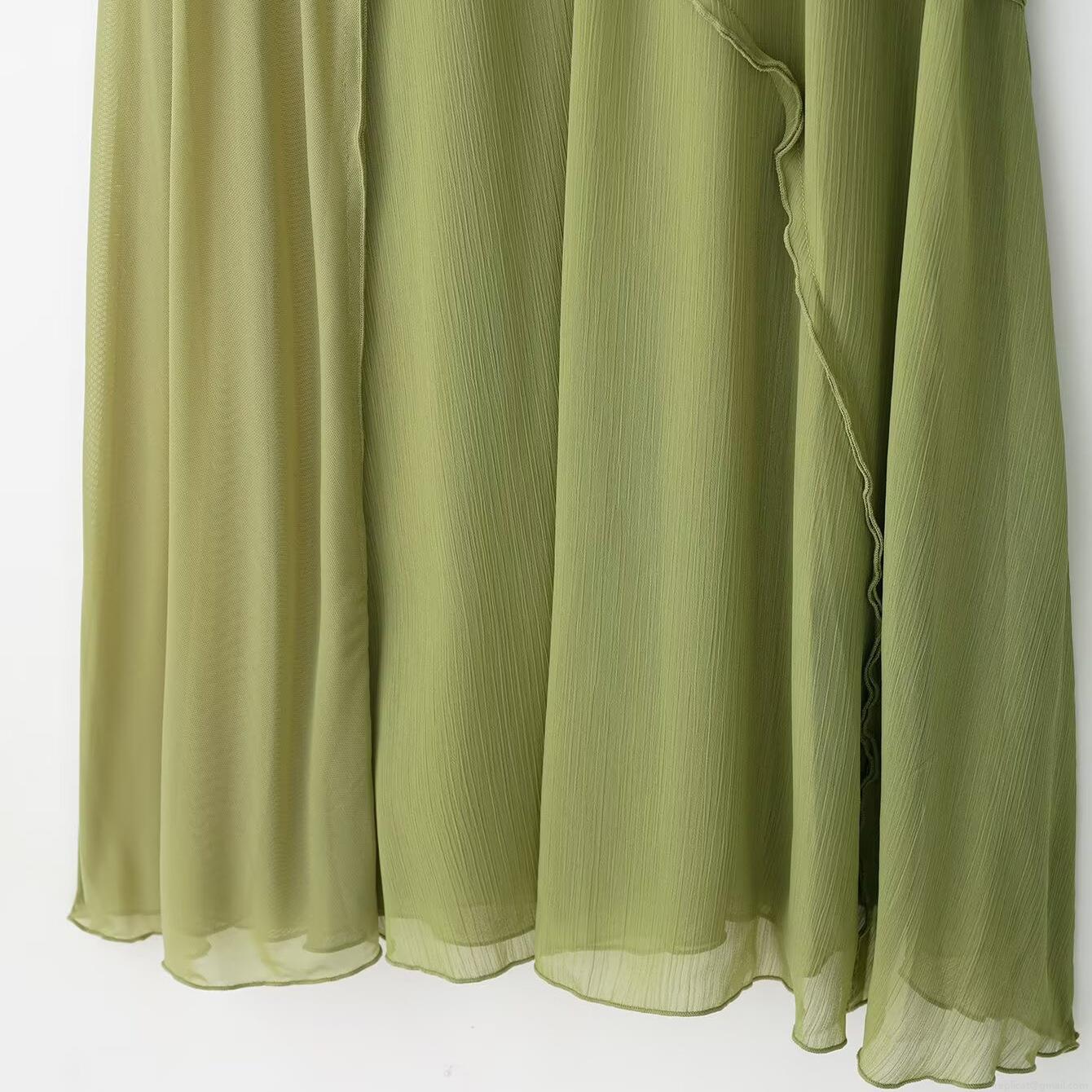 • Women's Sexy Grass Green Patchwork Camisole Midi Dress Mesh Chiffon Ruffle V-Neck Sleeveless Sling Dress For Party Club Vacation Summer