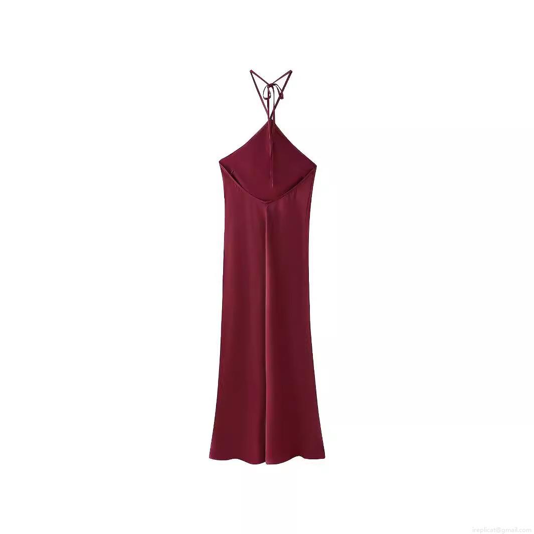 • Women's Sexy Halter Backless Satin Dress Elegant Solid Color Sleeveless V Neck Evening Party Cocktail Wedding Guest Maxi Dress