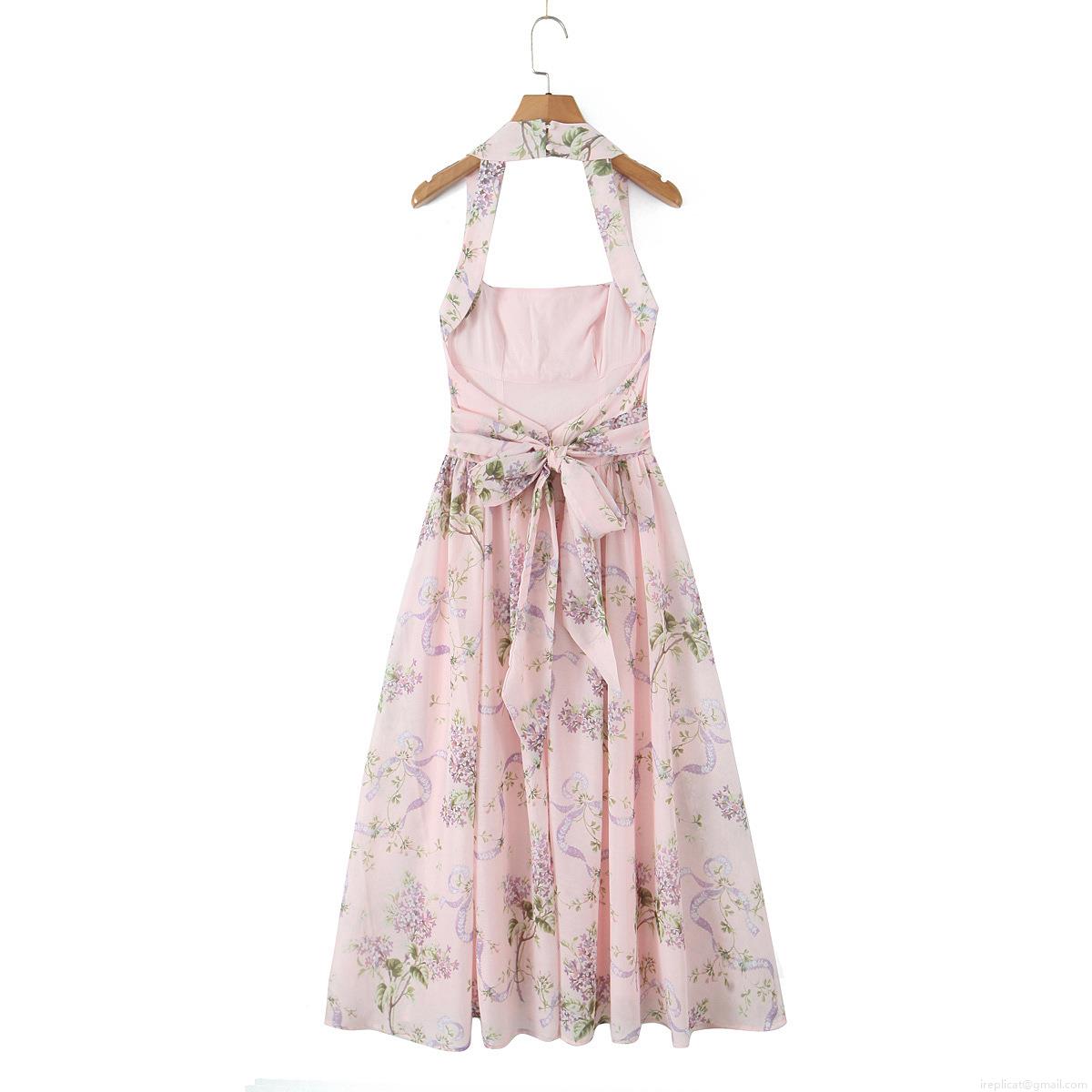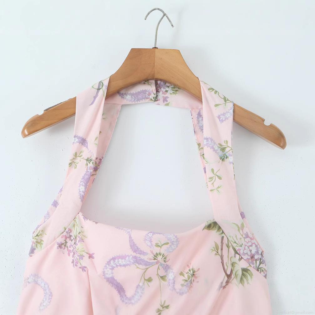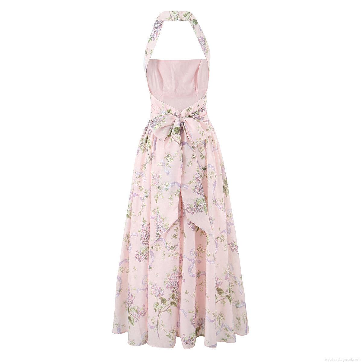 • Women's Sexy Halter Floral Print Midi Dress Sleeveless Backless Split Chiffon Polyester A-Line Dress With Large Bow For Summer Party Vacation Casual