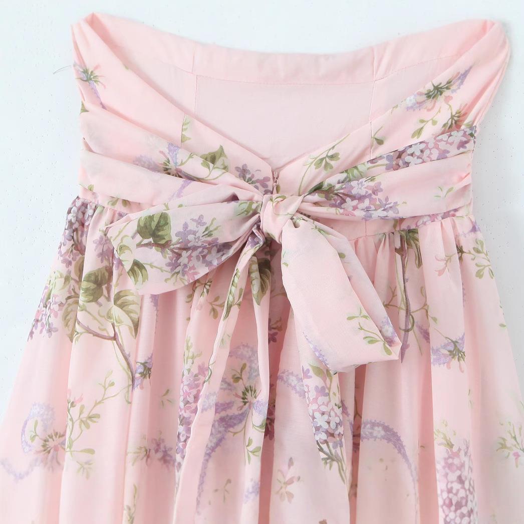 Bow, Floral Pattern, Neckband, Backless, Forked