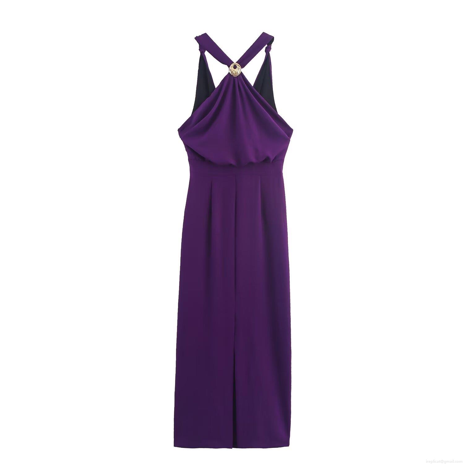 • Women's Sexy Halter Neck Midi Dress Backless Cross Strap Twist Knot Polyester Spandex Bodycon Dress With Metal Ring Decoration For Party Summer Fashion