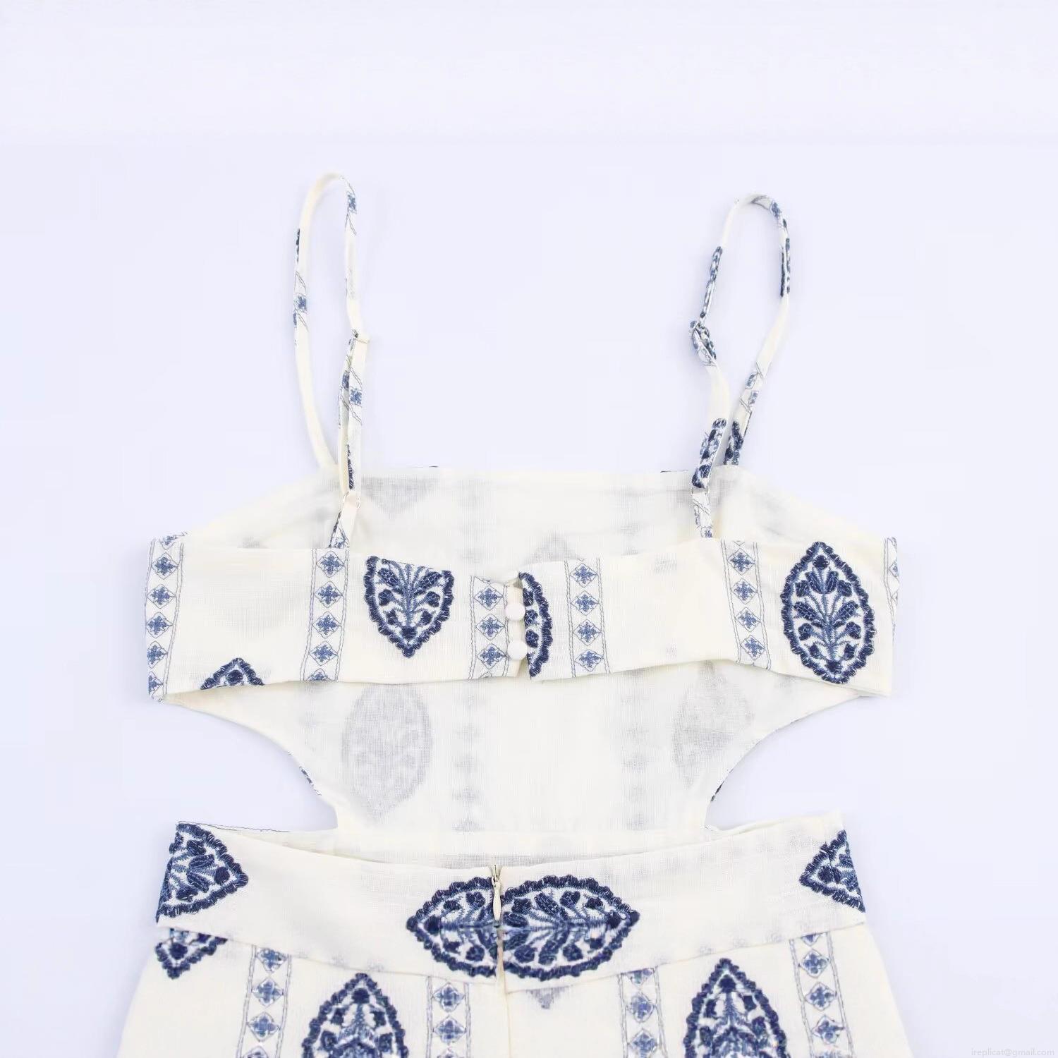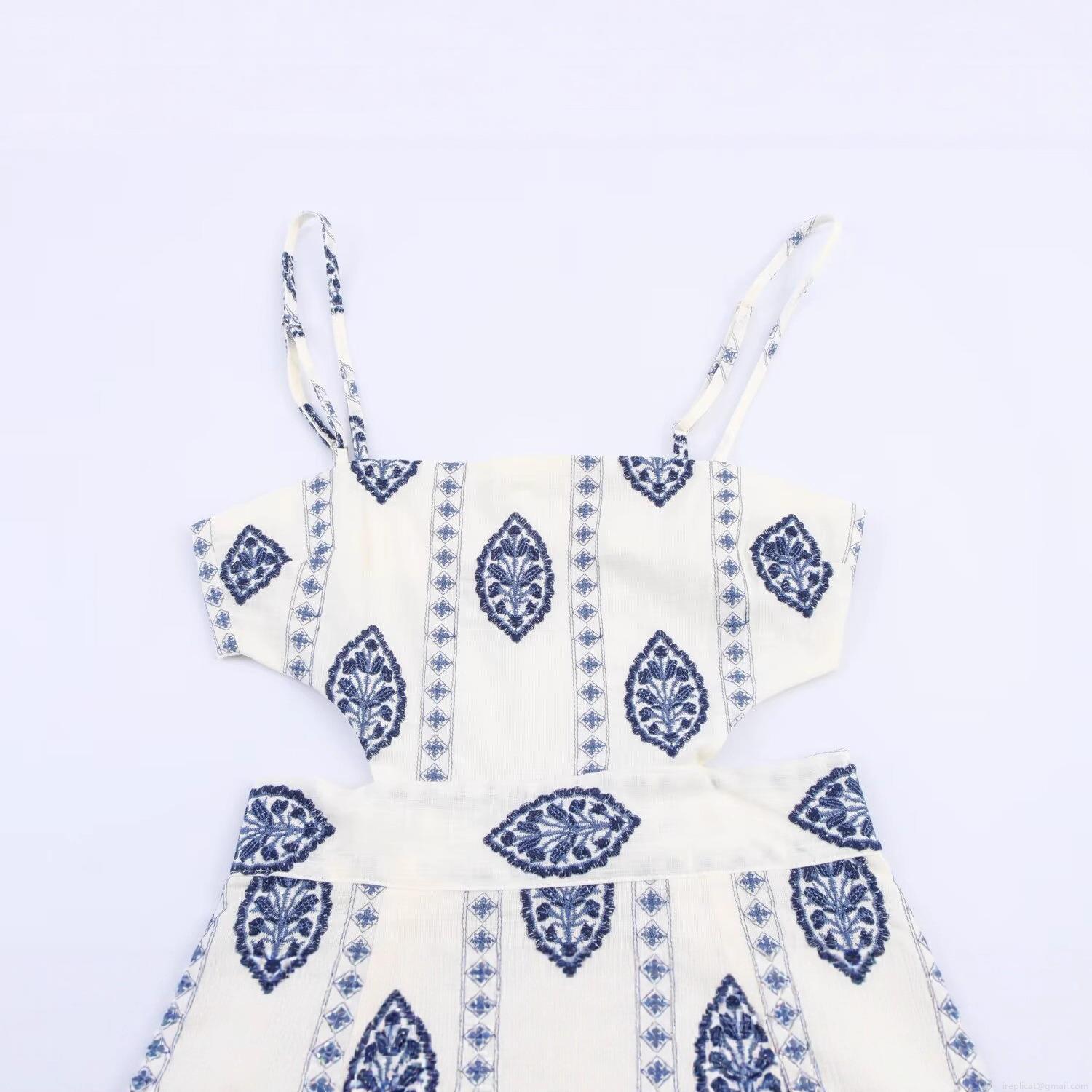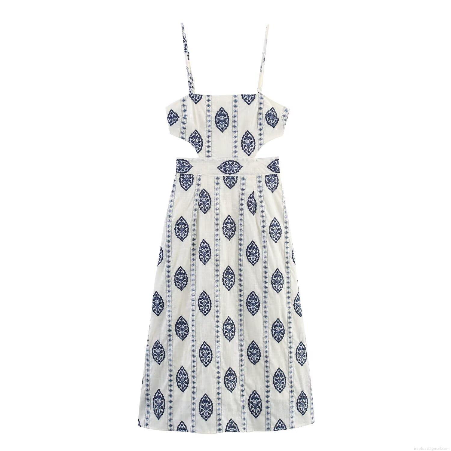 • Women's Sexy Hollow Out Backless Midi Dress Blue Embroidery Print Spaghetti Strap A-Line Vacation Beach Long Dress For Women 100% Polyester