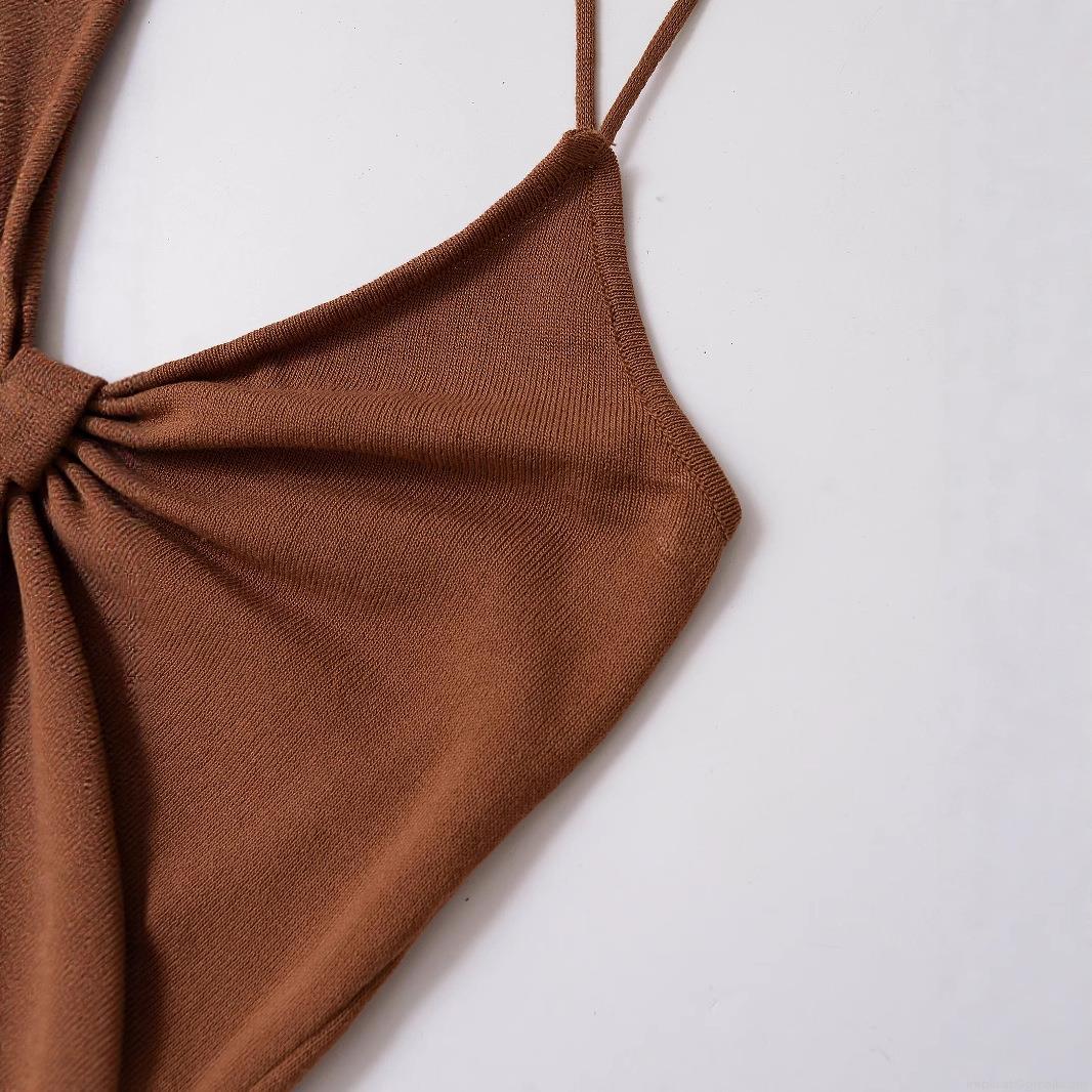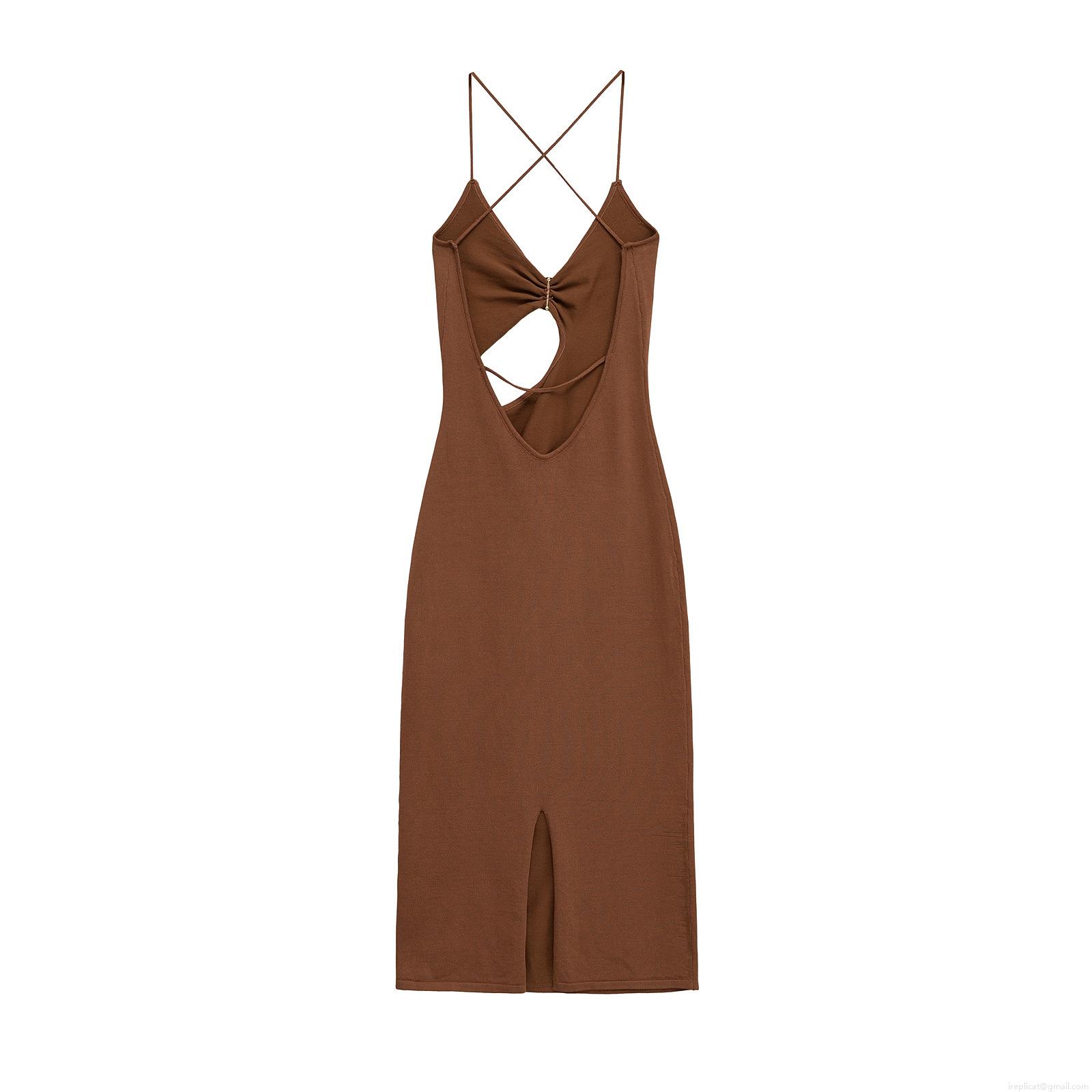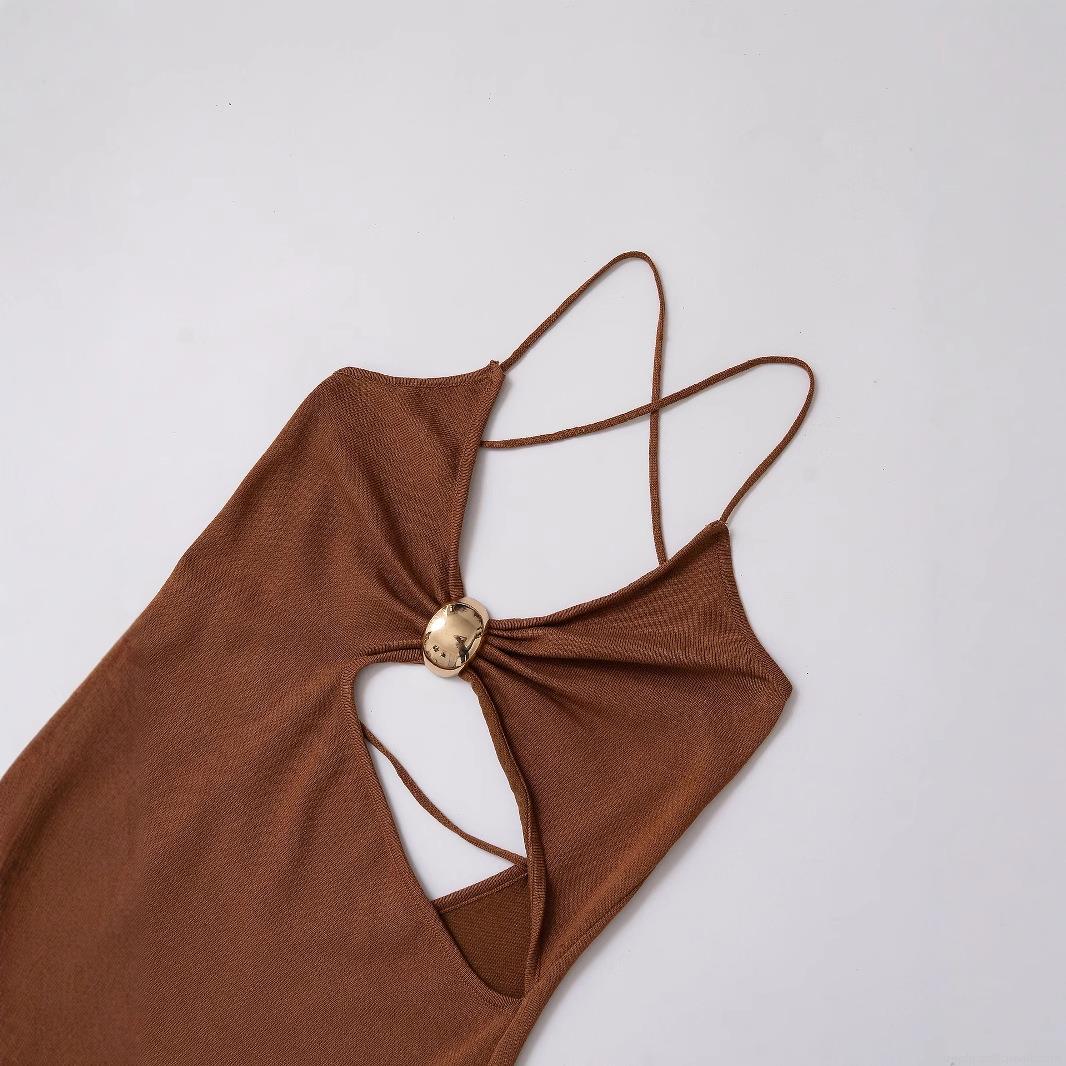 • Women's Sexy Hollow Out Knit Dress Elegant V Neck Sleeveless Midi Dress With Gold Metal Buckle Detail Criss-Cross Back For Party Evening Vacation