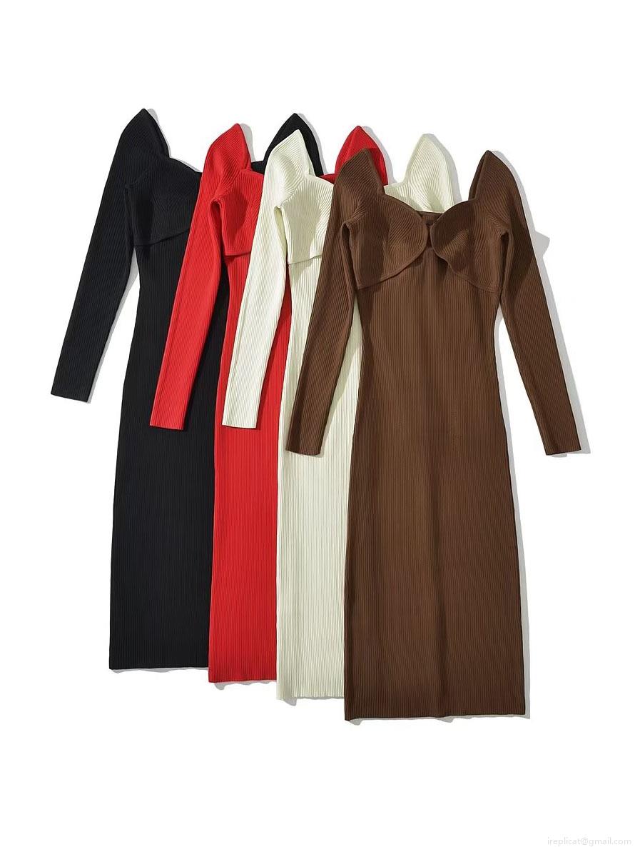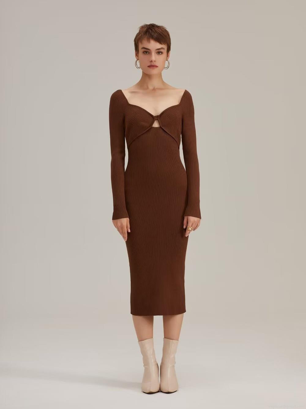 • Women's Sexy Knit Midi Dress Long Sleeve Ribbed Bodycon Sweater Dress Square Neck Slim Fit Fall Winter Polyester Elegant Party Dress