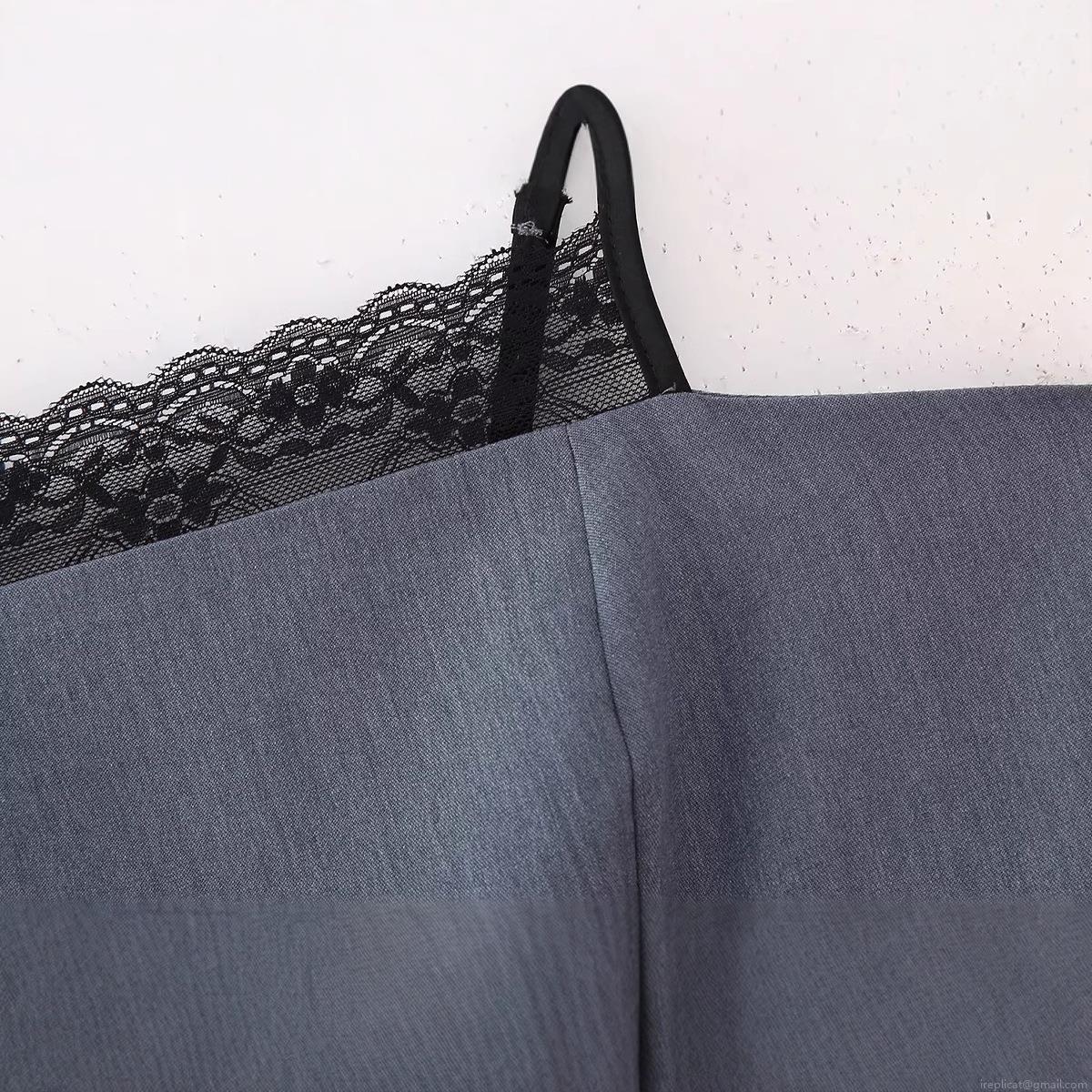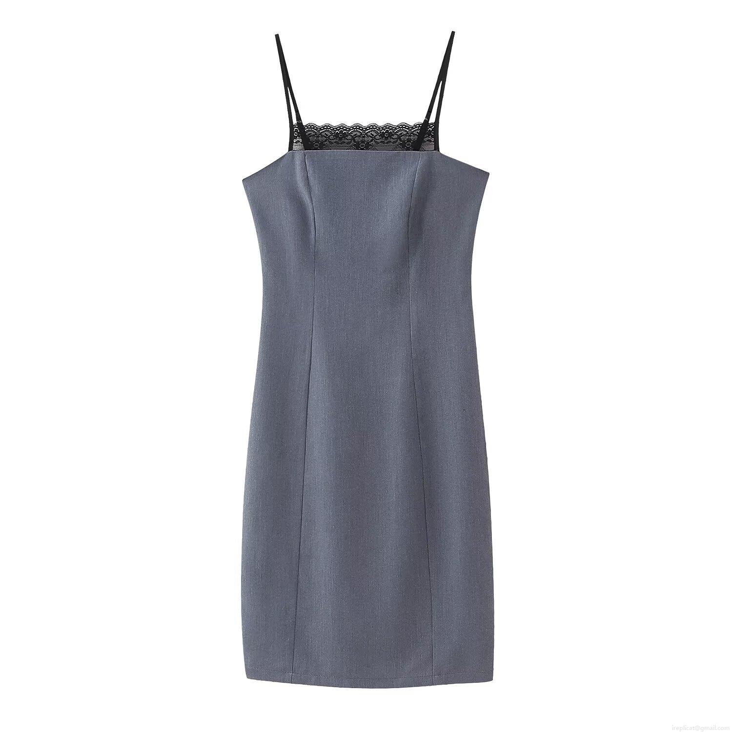 Women's Sexy Lace Stitching Bodycon Midi Dress Elegant Spaghetti Strap Side Split Polyester Dress Solid Grey Sleeveless Club Party Dress for Women