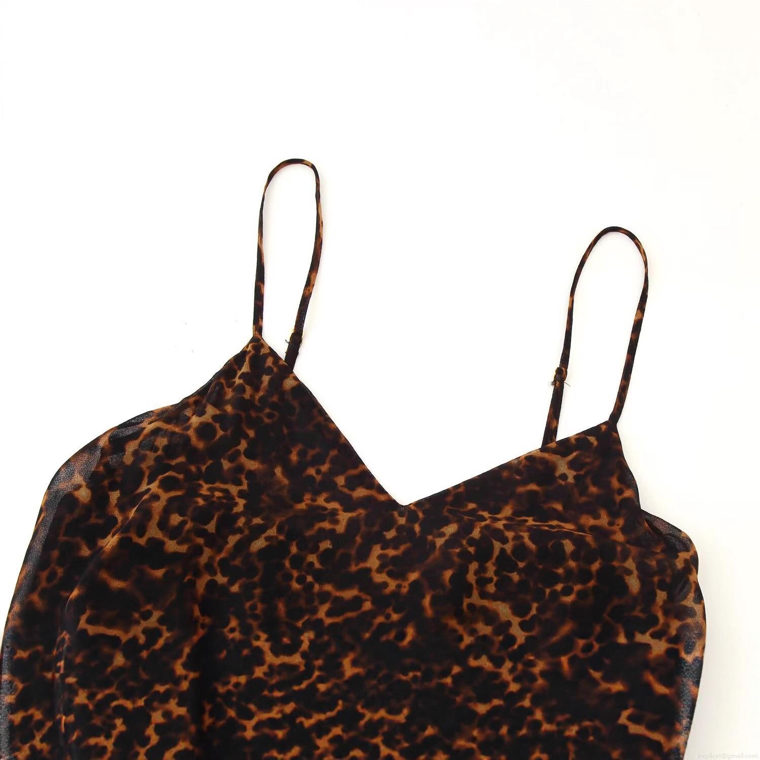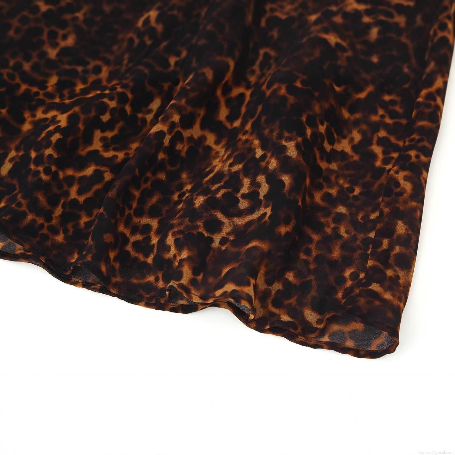 • Women's Sexy Leopard Print Chiffon Polyester Spaghetti Strap Midi Dress V-Neck Ruffle Sleeveless Summer Party Sundress Celebrity Elegant Style
