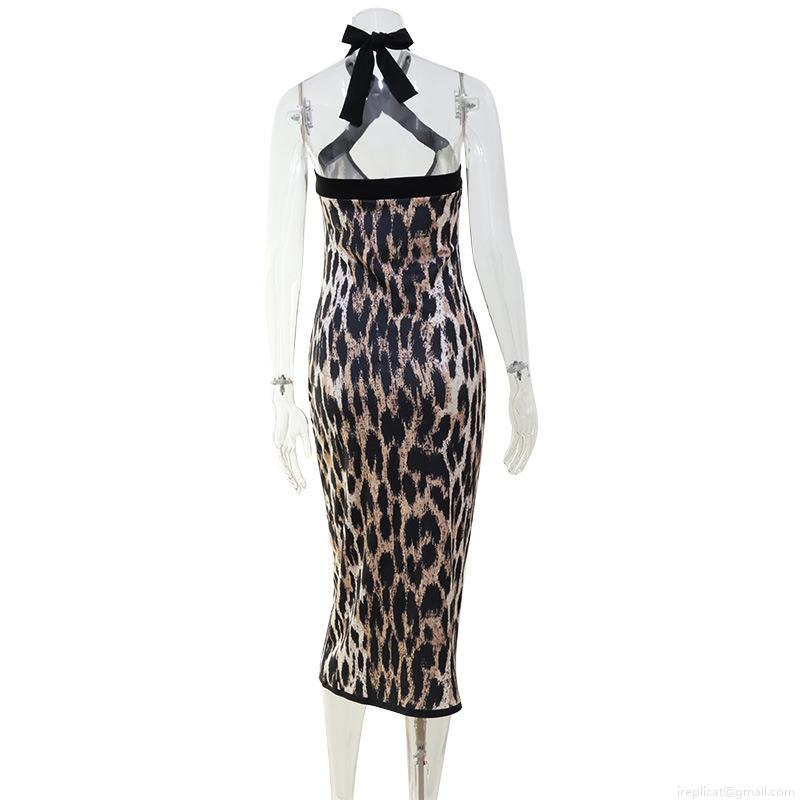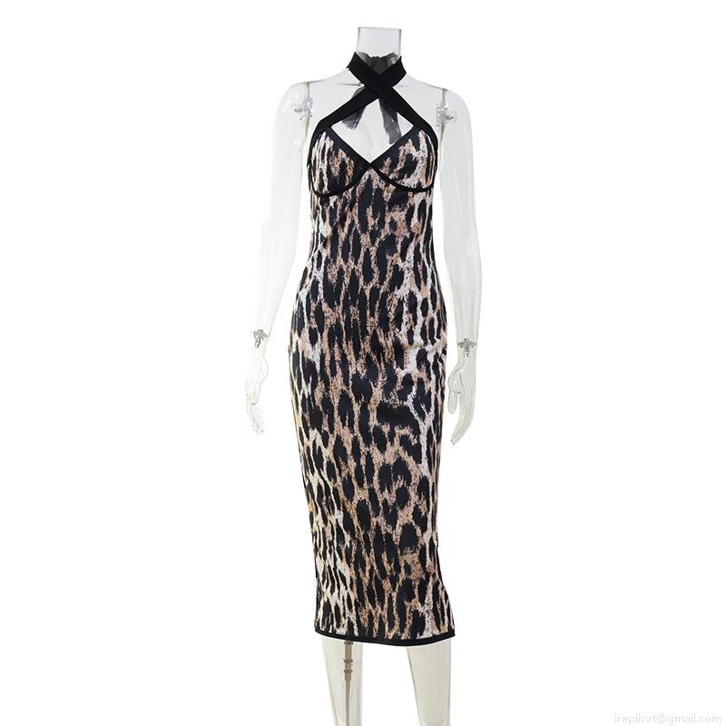 Leopard Print, Backless, Hip Wrap, Cross-neck