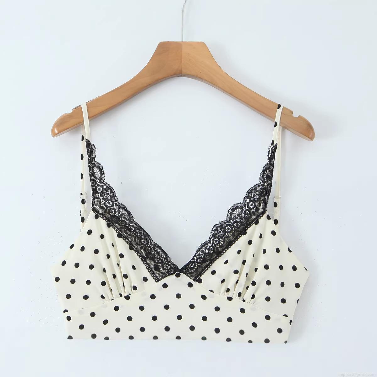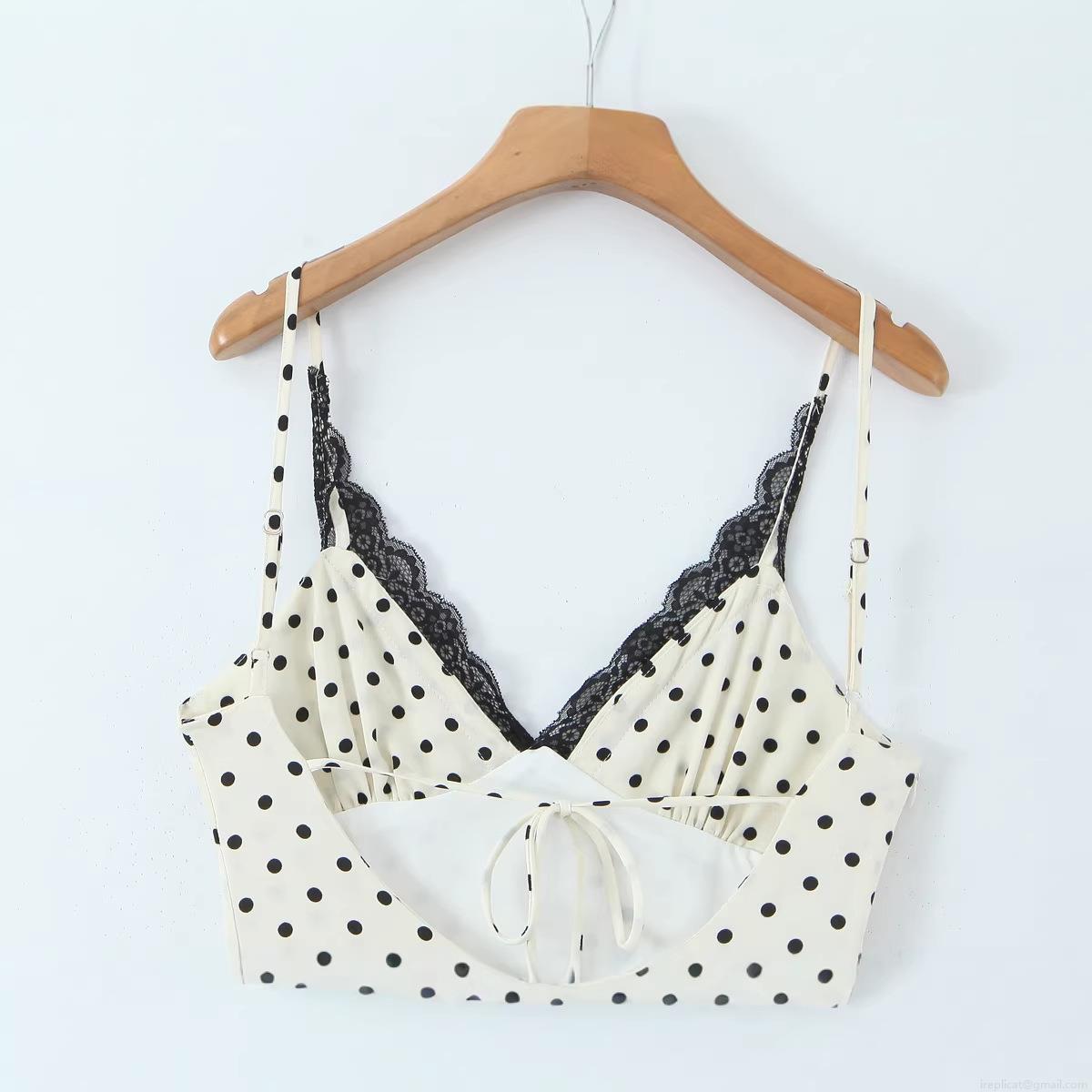 Polka Dots, Lace Patchwork, Polka Dot Print, Backless Tie, Thin Shoulder Straps