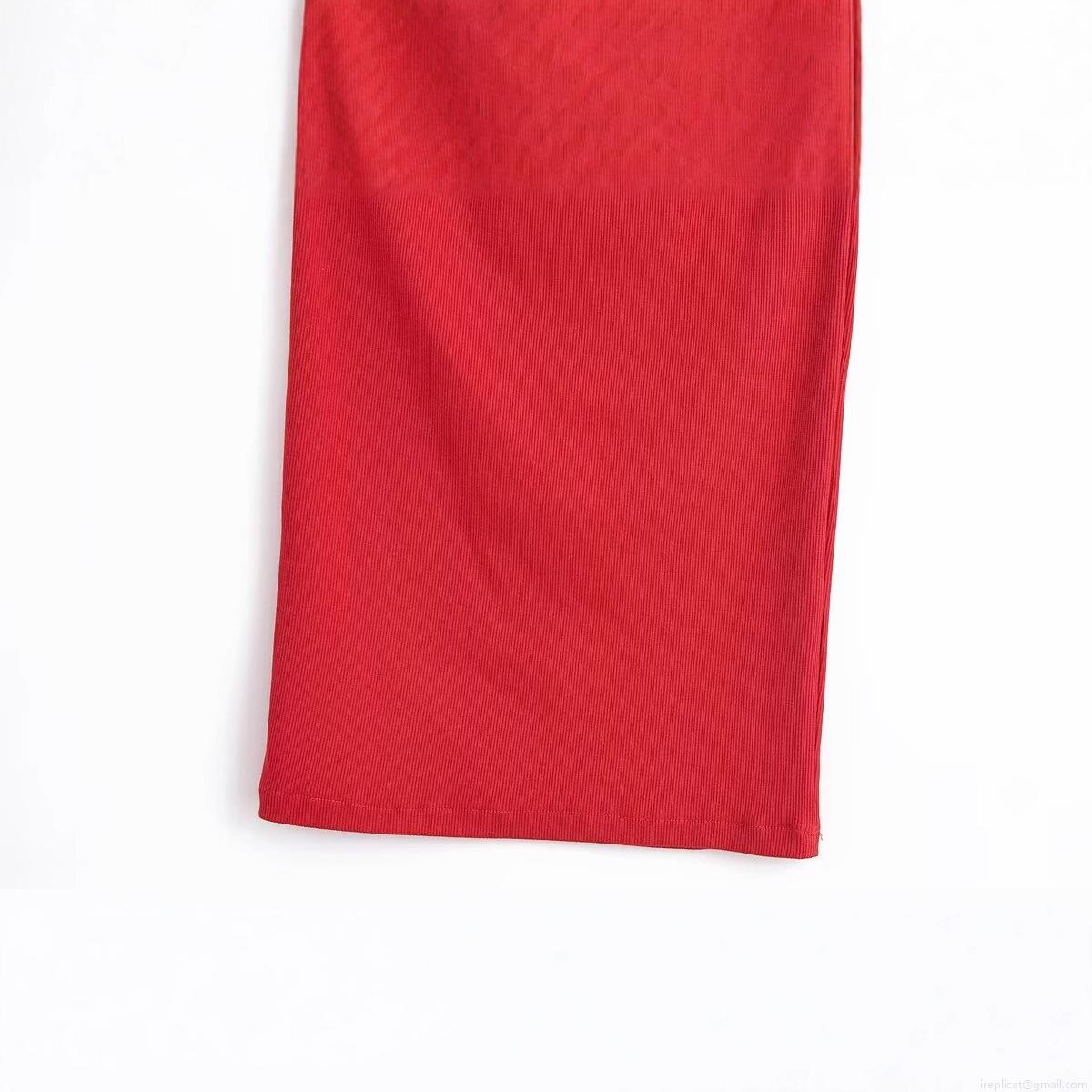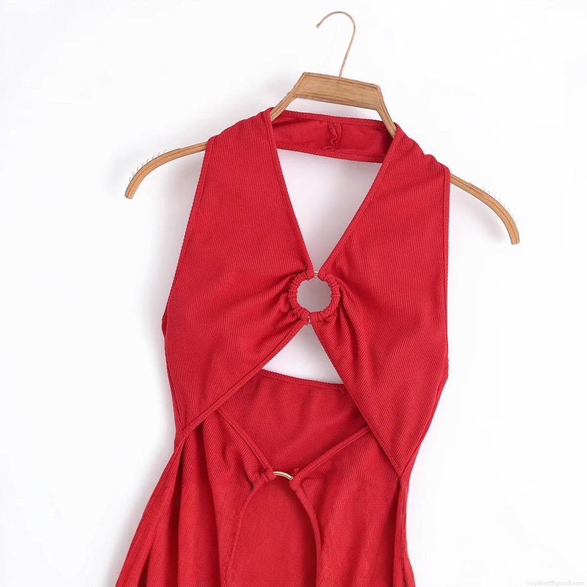 • Women's Sexy Red Halter Neck Bodycon Midi Dress Elegant Ribbed Knit Cutout Dress With Metal Ring Decoration Party Clubwear For Ladies