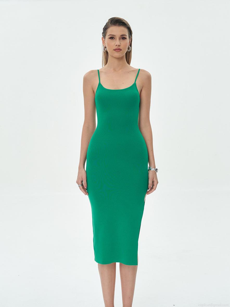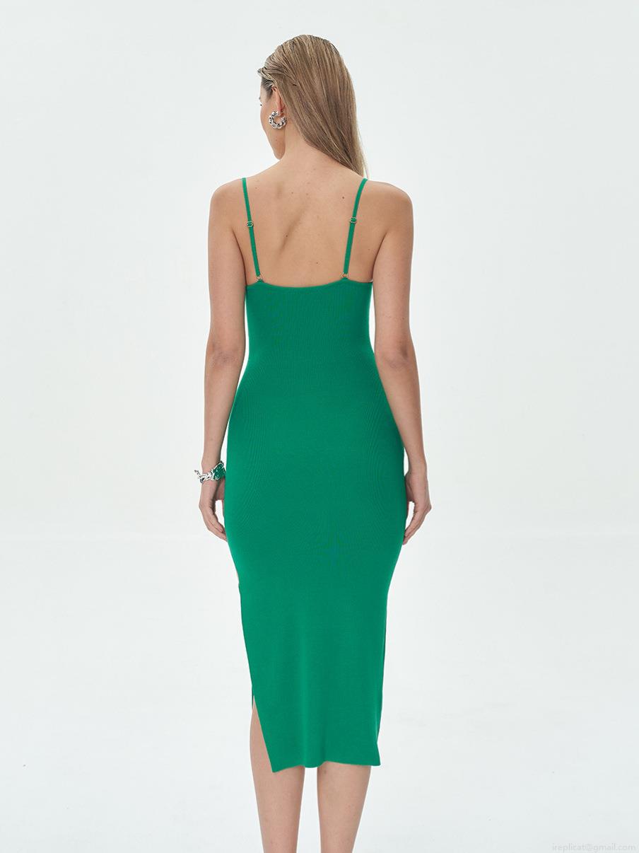 • Women's Sexy Ribbed Knit Bodycon Cami Dress Solid Color High Side Slit Spaghetti Strap Midi Dress Summer Sleeveless Party Clubwear