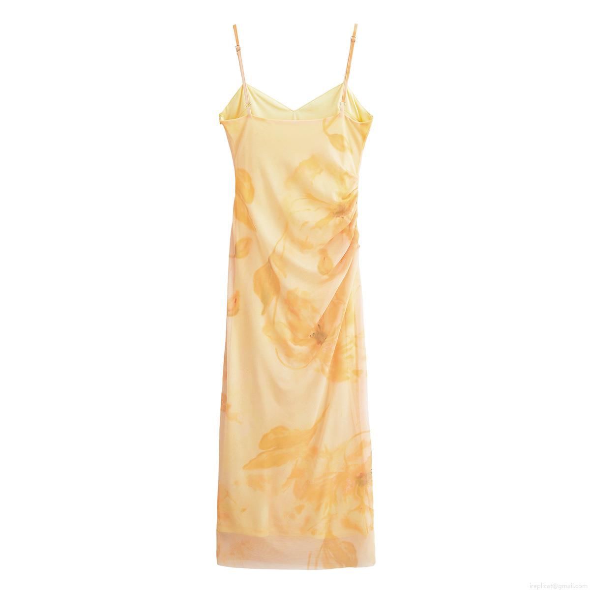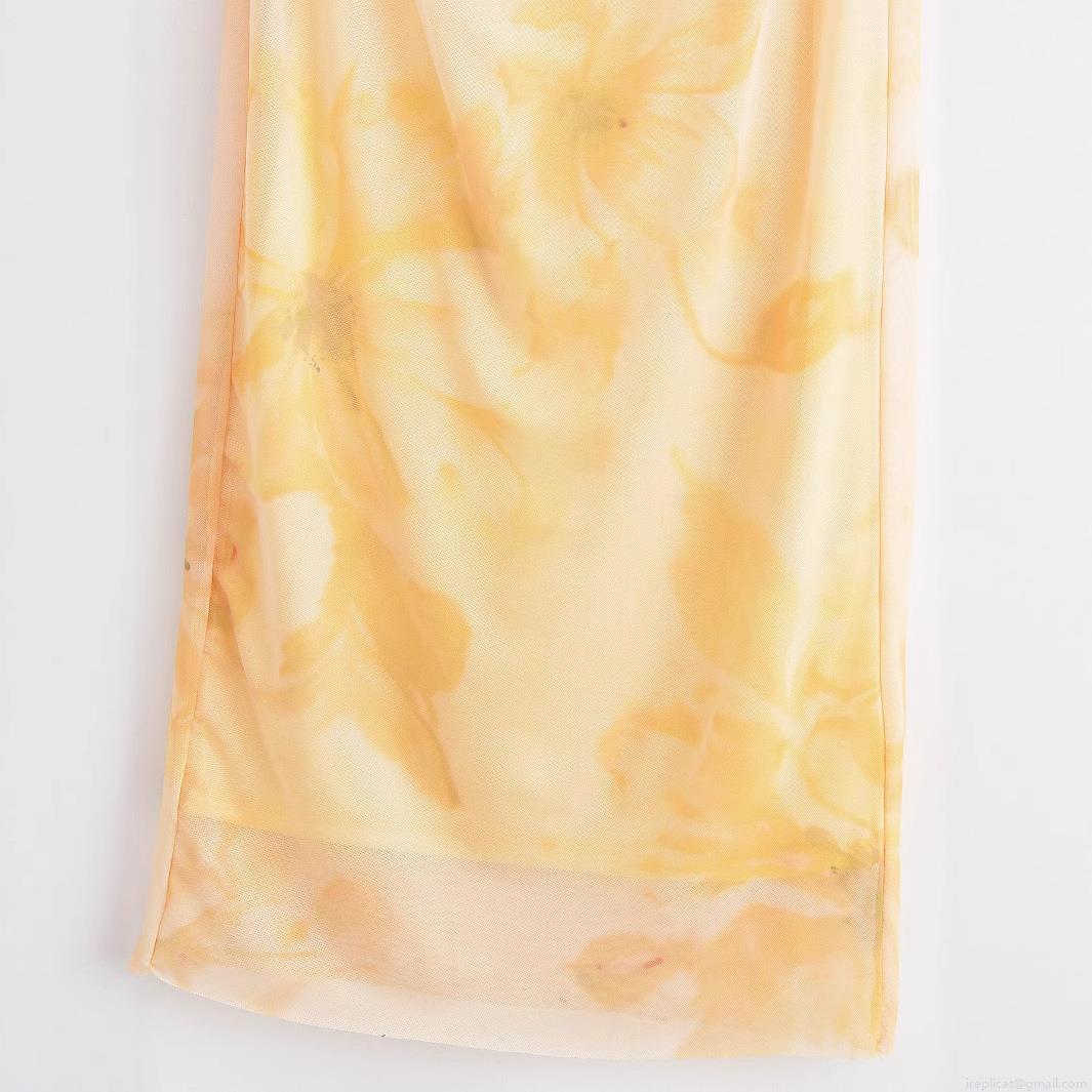 Pleats, Printing, Mesh, Suspenders, Sunflower Floral Pattern