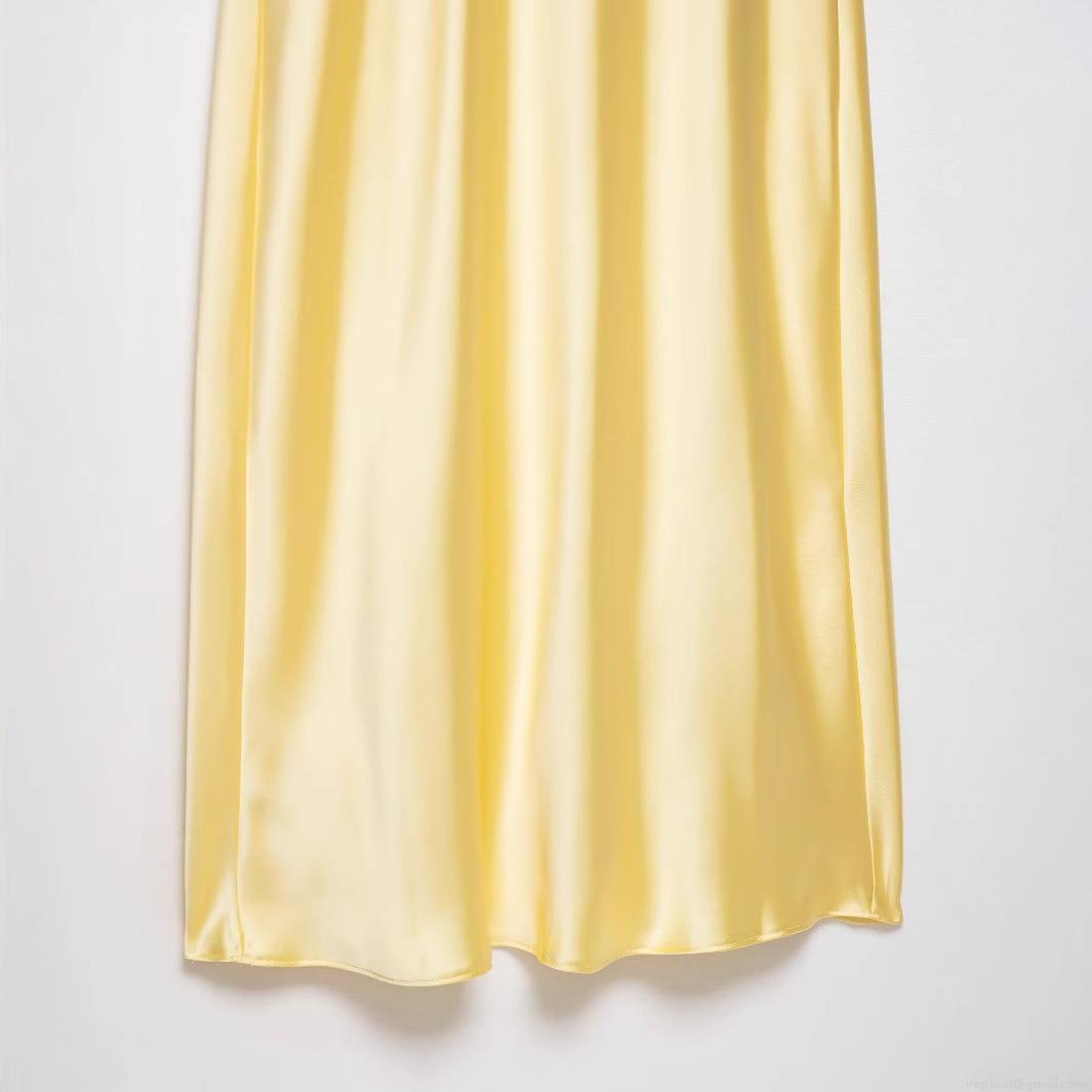 • Women's Sexy Satin Backless Midi Dress Spaghetti Strap V-Neck Solid Yellow Silk Texture Evening Party Cocktail Summer Elegant Long Dress