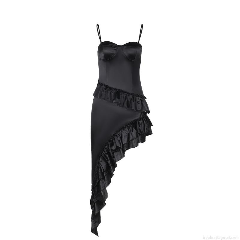 Solid Color, Splice, Ruffles, Forked, Irregular Hem