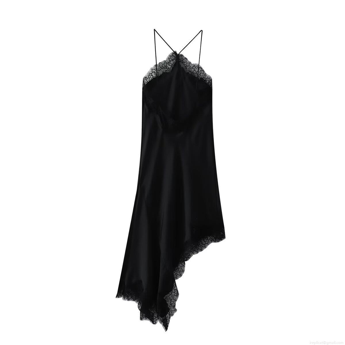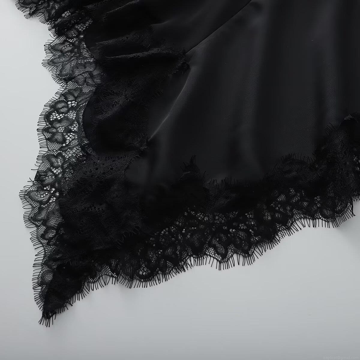 • Women's Sexy Satin Cami Midi Dress With Eyelash Lace Trim Asymmetric Hem V Neck Sleeveless Patchwork Dress For Party Club Night Out Streetwear Dress