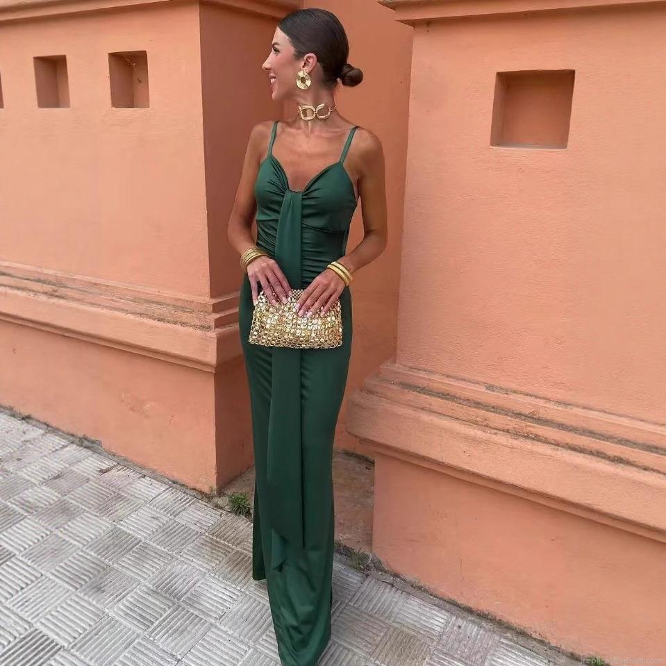 Solid Color, Pleats, Satin, Knot, Deep V, High Fork