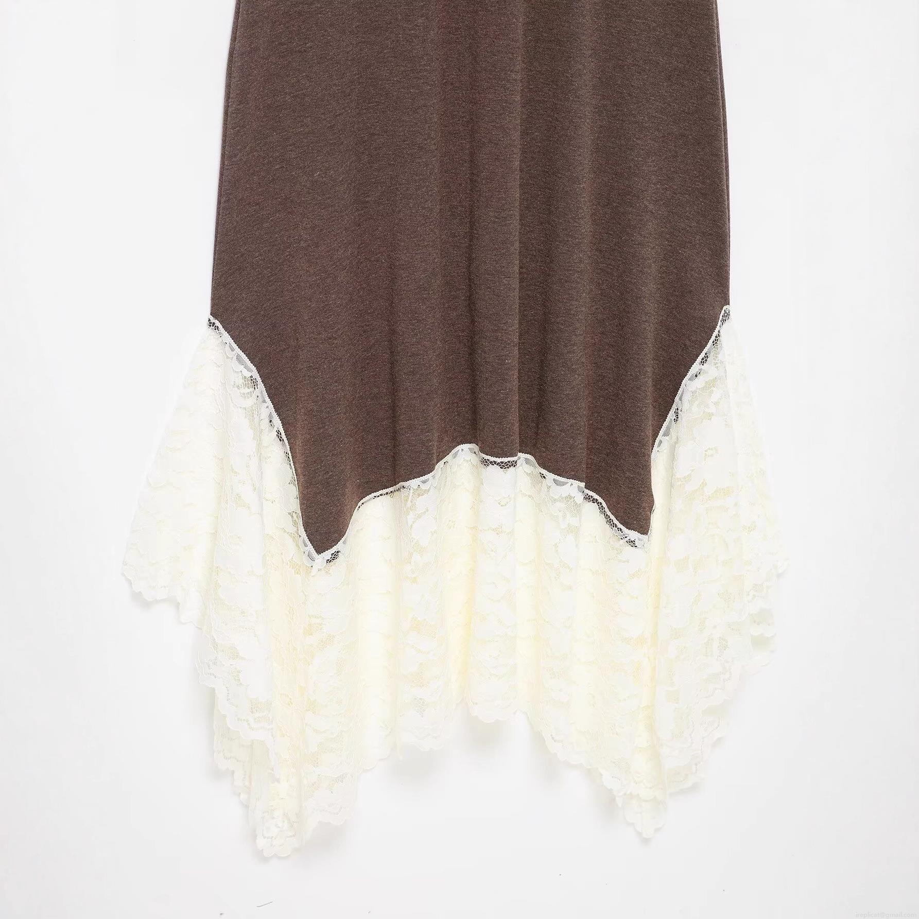 • Women's Sexy Semi-High Neck Spliced Lace Irregular Hem Sleeveless Midi Dress Elegant Knitted Bodycon Dress Dark Brown White Splicing Evening Party Dress