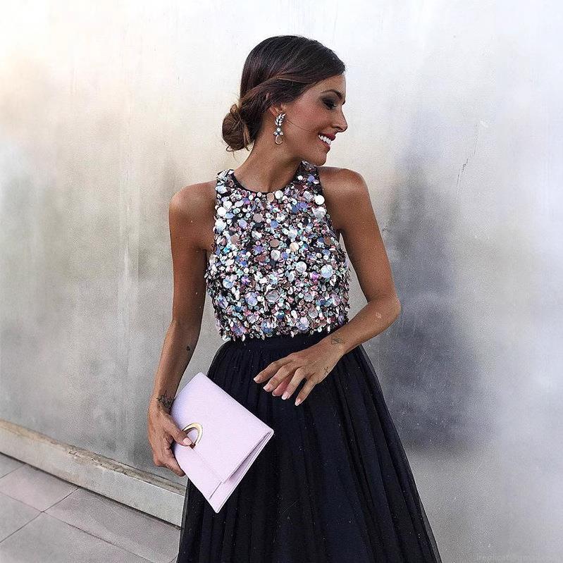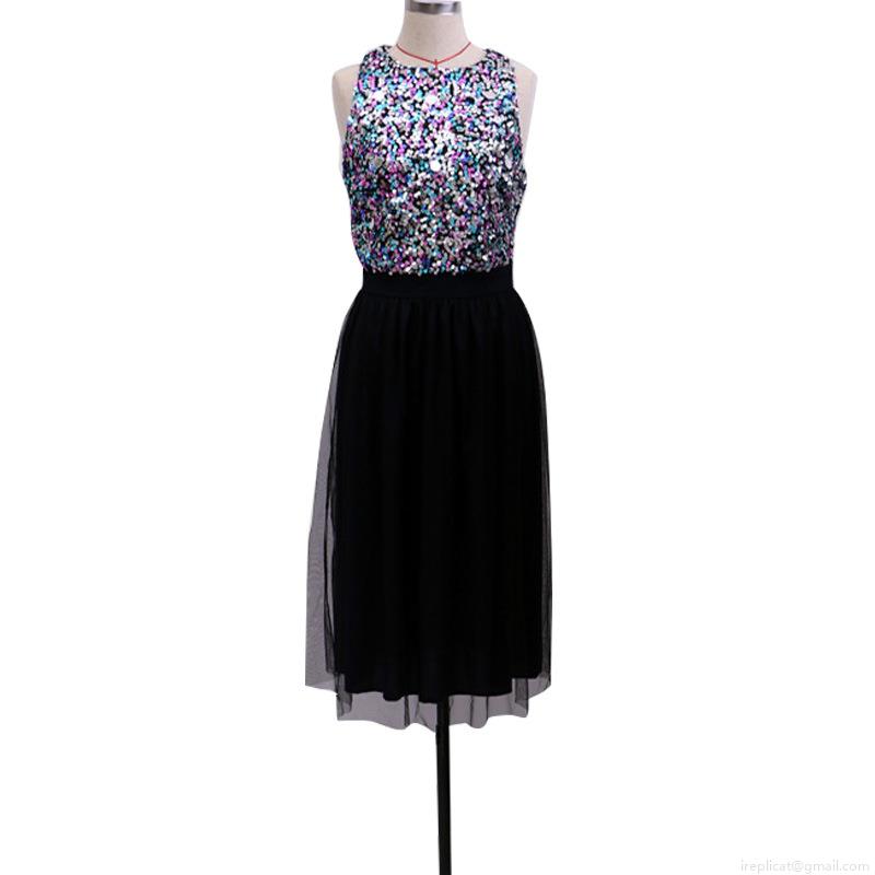 • Women's Sexy Sequin Patchwork Mesh Midi Dress Sleeveless Round Neck Elegant Party Evening Cocktail Formal Gown Dress For Ladies
