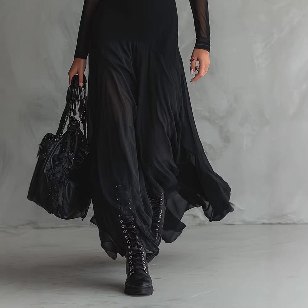 Solid Color, Pleats, Perspective, Mesh Splicing