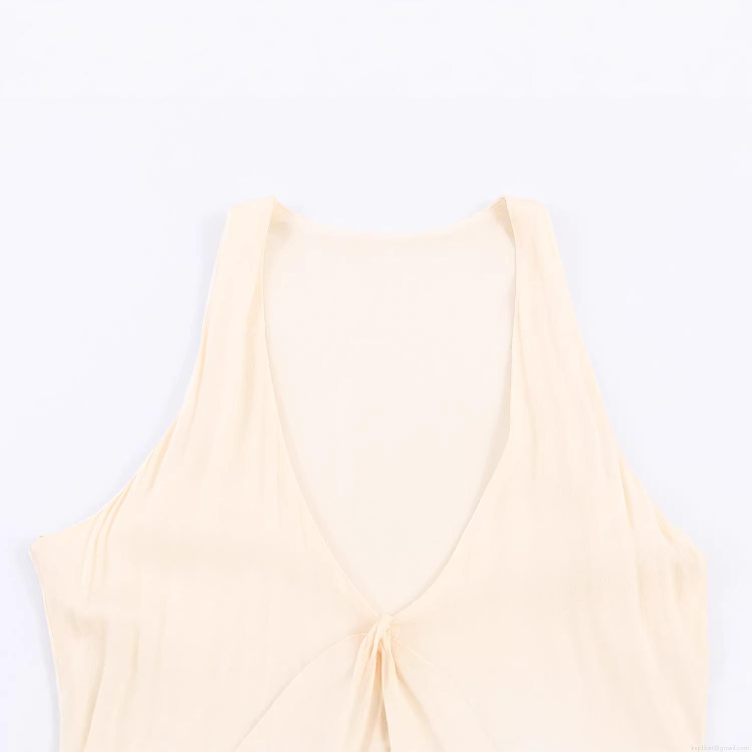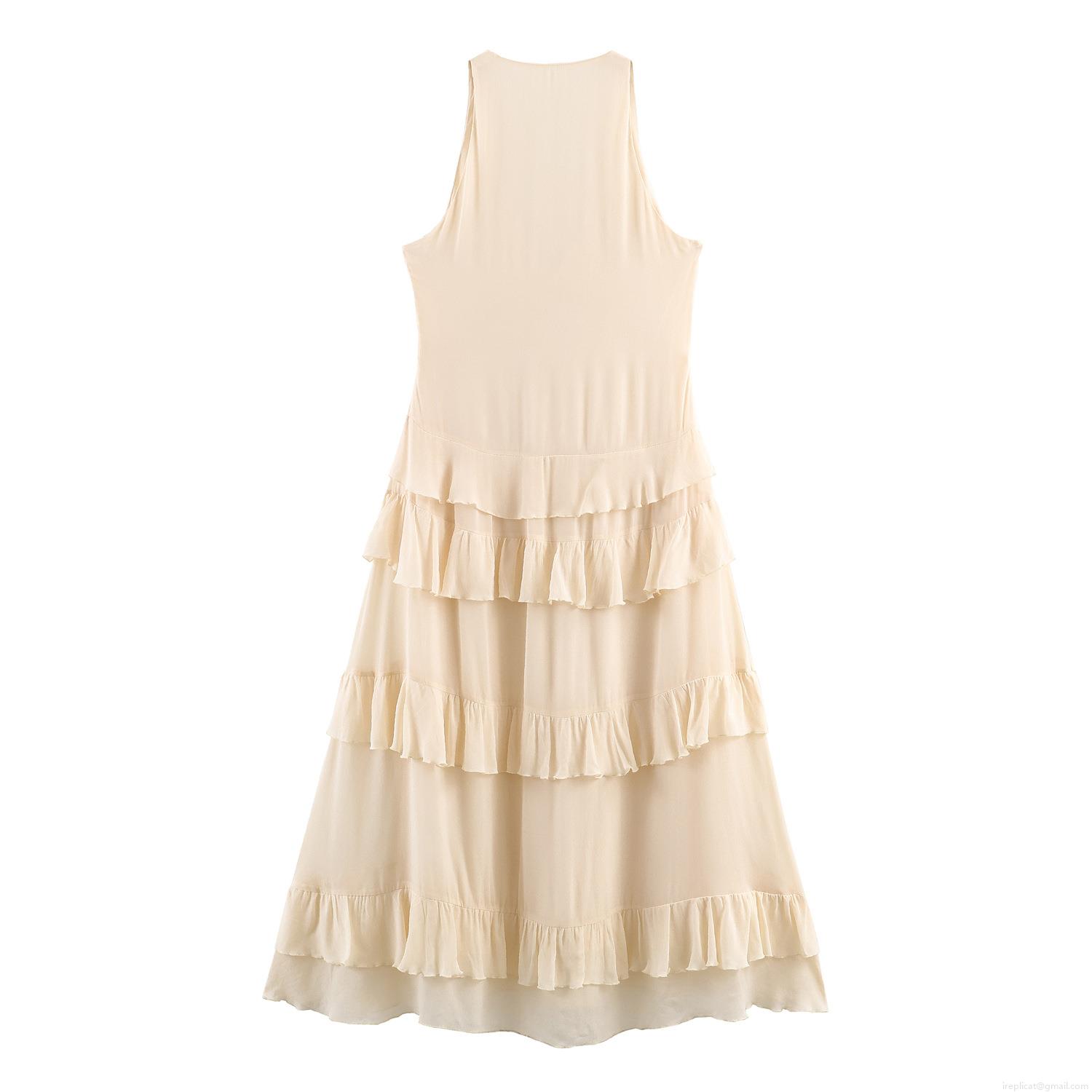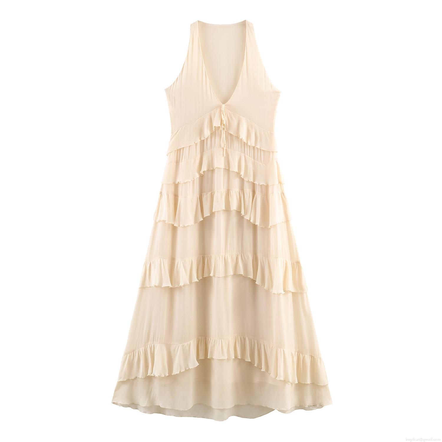 • Women's Sexy Sleeveless Deep V-Neck Layered Ruffle Midi Dress Bohemian Chiffon Tiered Cake Dress For Summer Vacation Party Date Cream