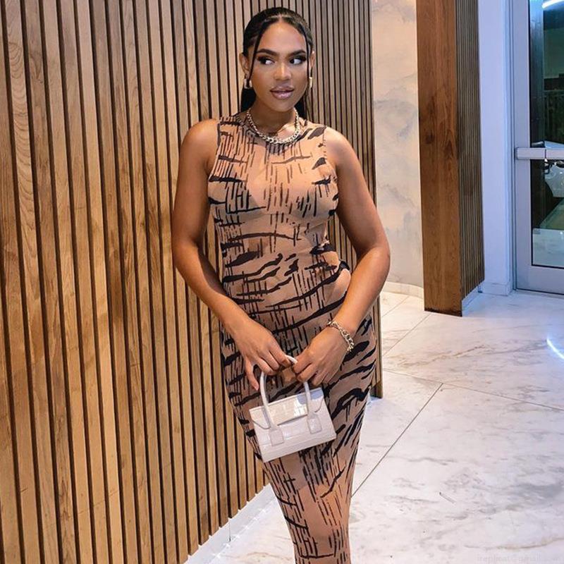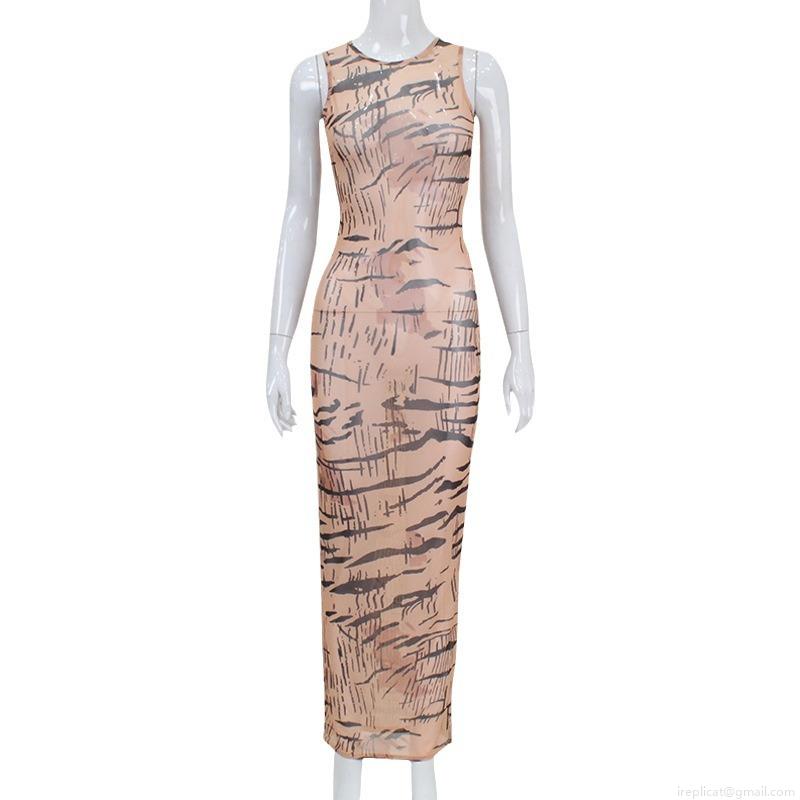 • Women's Sexy Sleeveless Tiger Print Mesh Bodycon Midi Dress Elegant Slim Fit Round Neck Tank Long Dress Party Streetwear