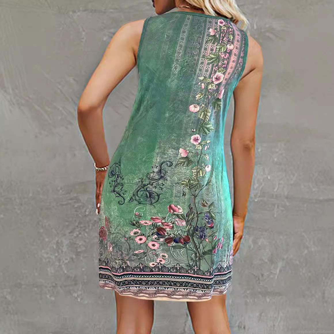 • Women's Sexy Sleeveless V-Neck Floral Print Midi Dress Summer Casual Polyester A-Line Sundress For Vacation Beach Daily Wear Lightweight Breathable