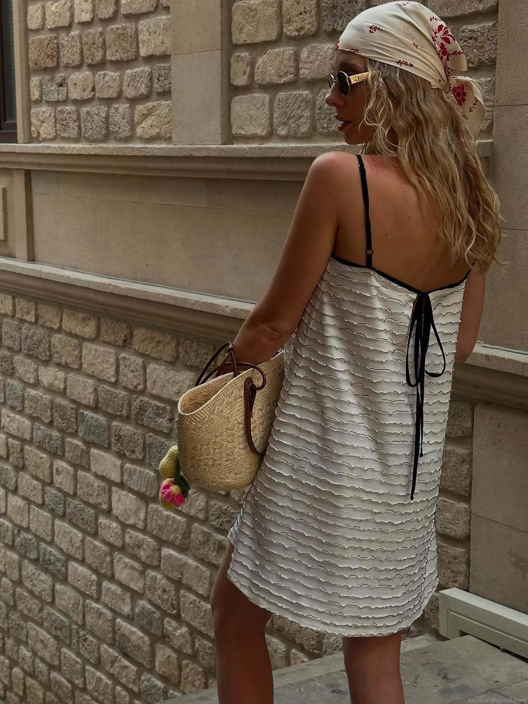Solid Color, Pleats, Multi-story, Backless, Wave Texture, Layering, Thin Shoulder Straps