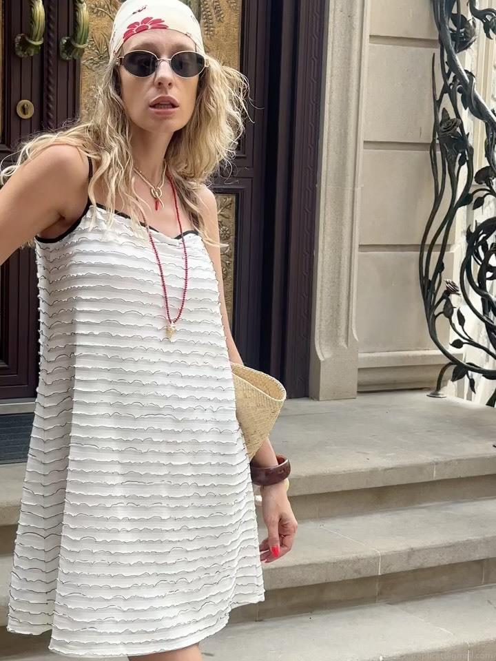 • Women's Sexy Spaghetti Strap Midi Dress Sleeveless Backless Ruffle Textured Bodycon Cami Dress For Summer Vacation Beach Party Cotton Blend