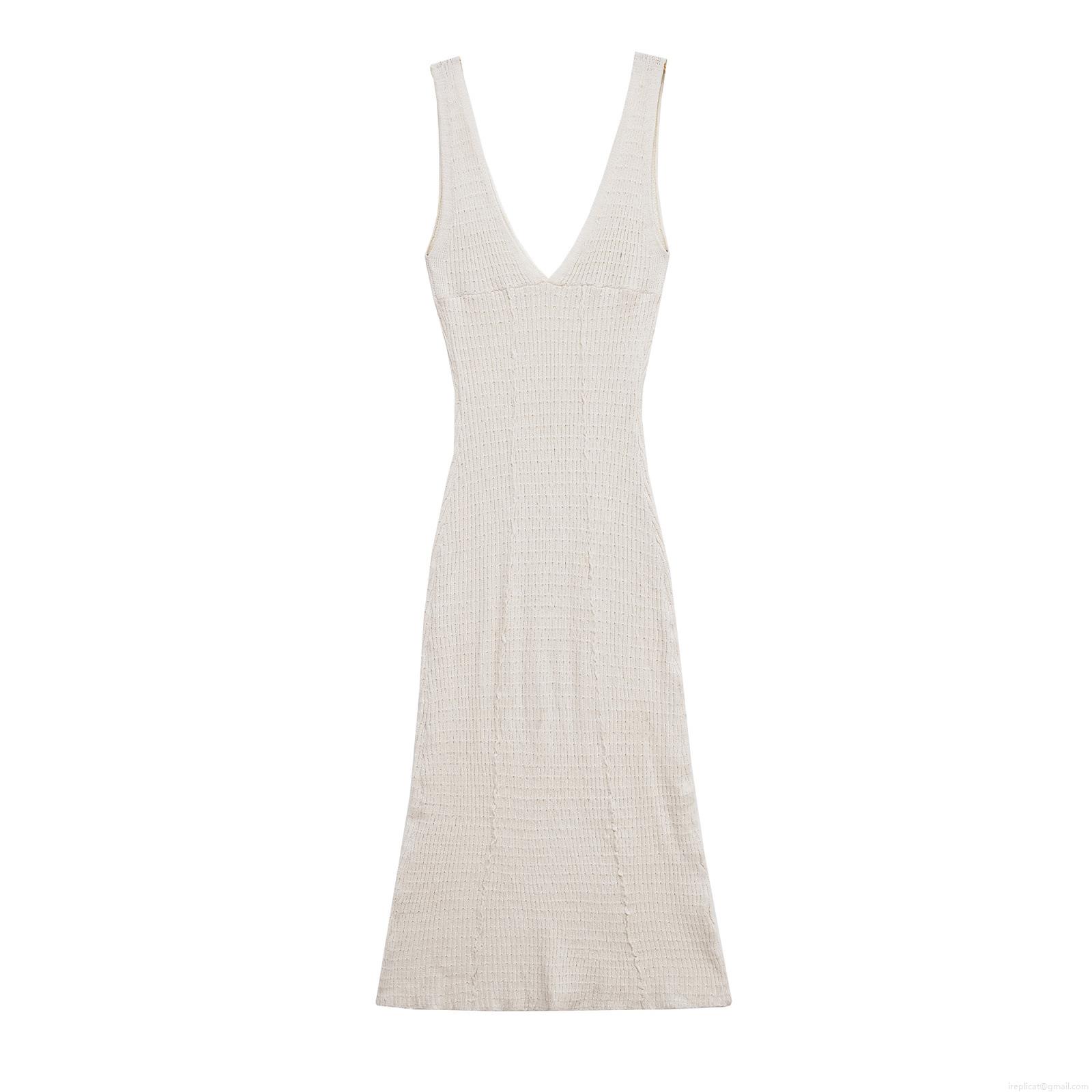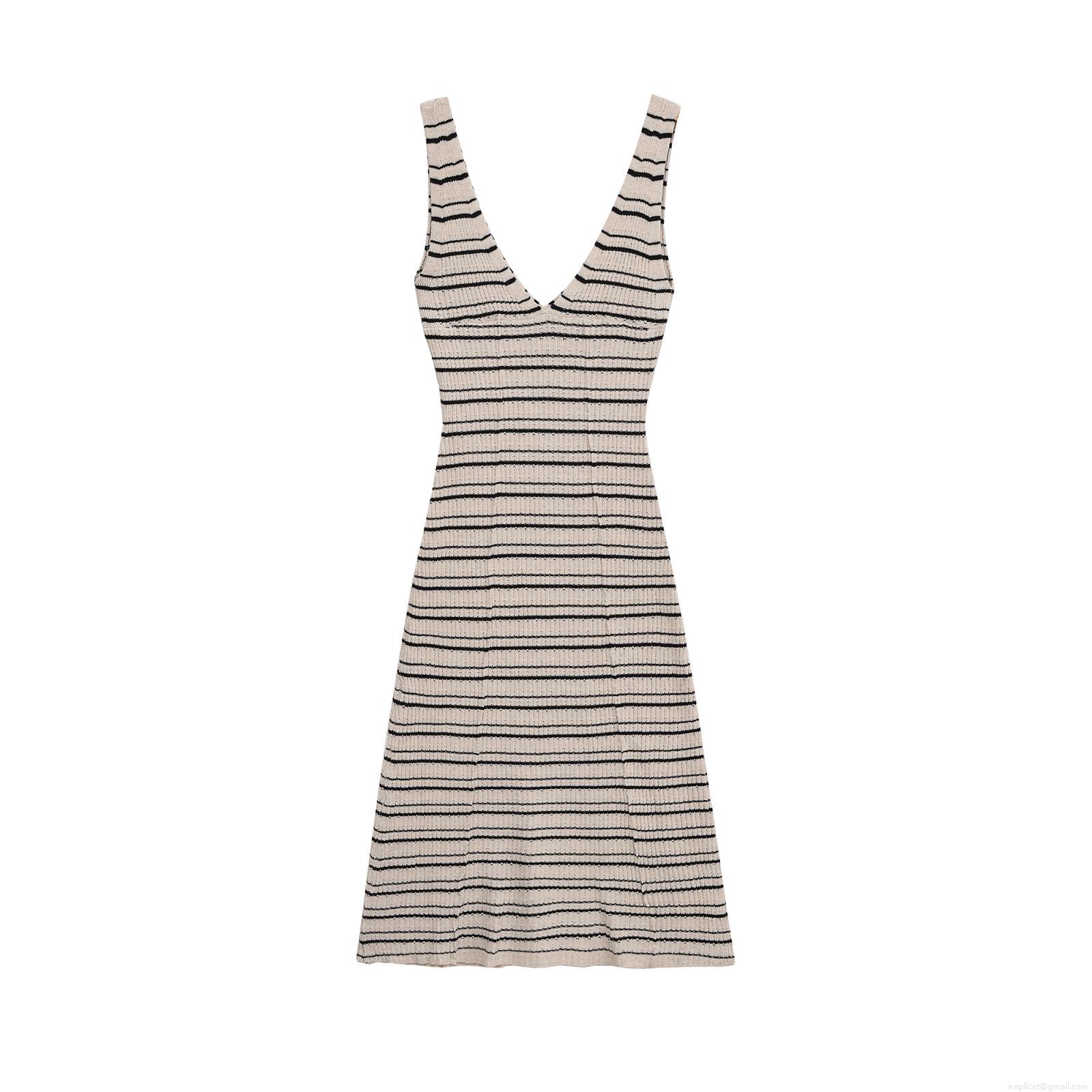 • Women's Sexy V Neck Knit Midi Dress Sleeveless Backless Stripe Patchwork Summer Bodycon Camisole Dress for Party Beach Streetwear