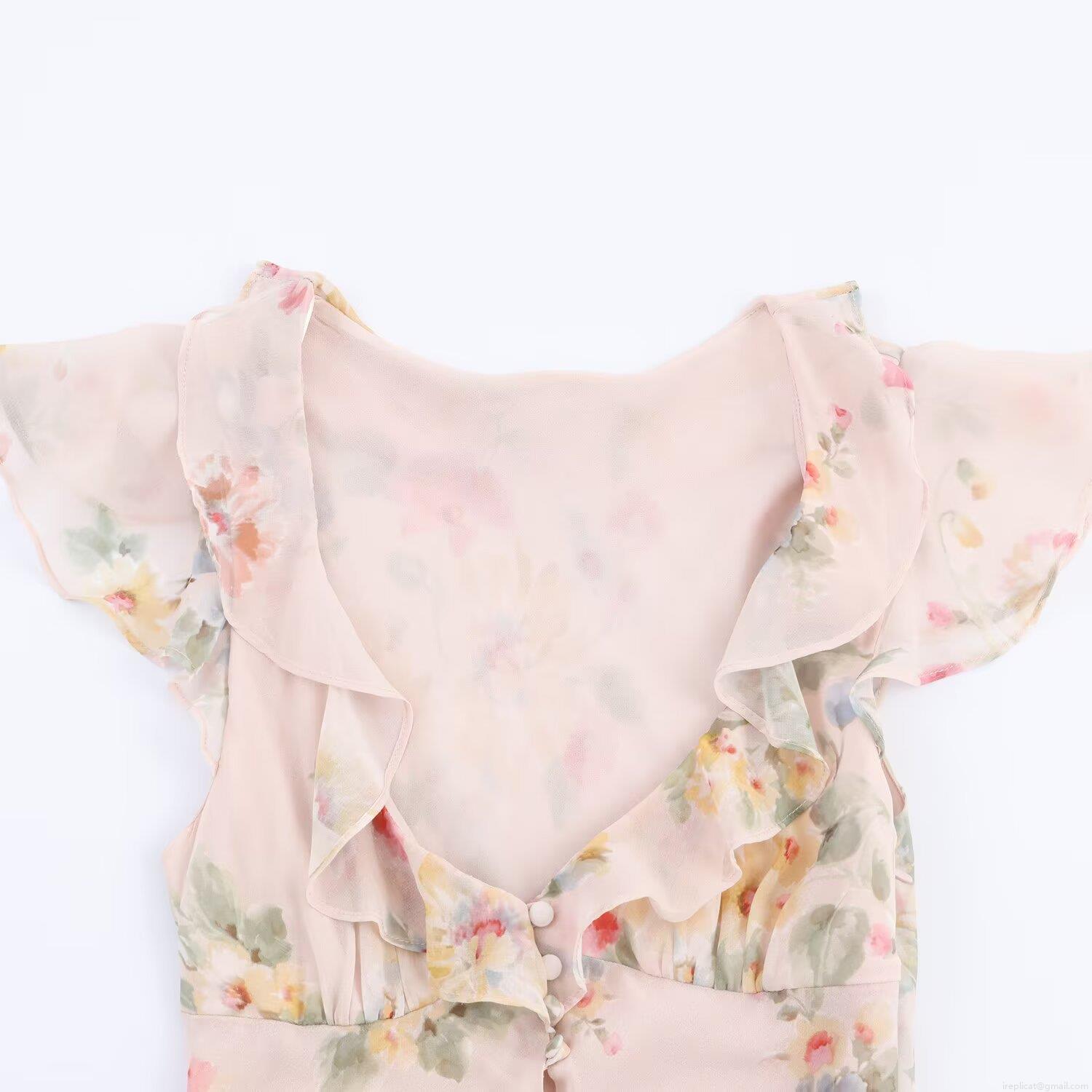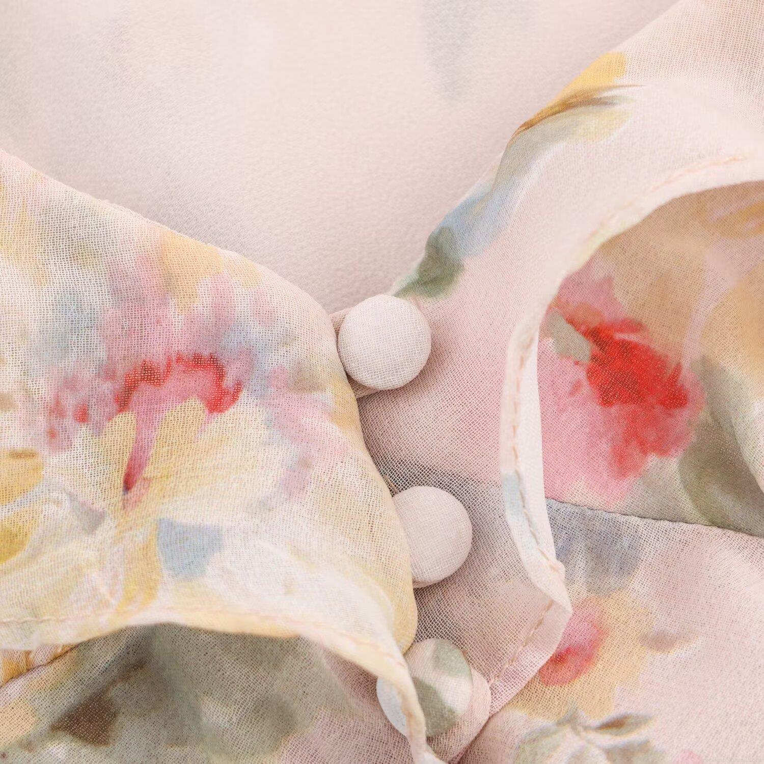 Floral Pattern, Ruffles, V-neck, Button Decoration