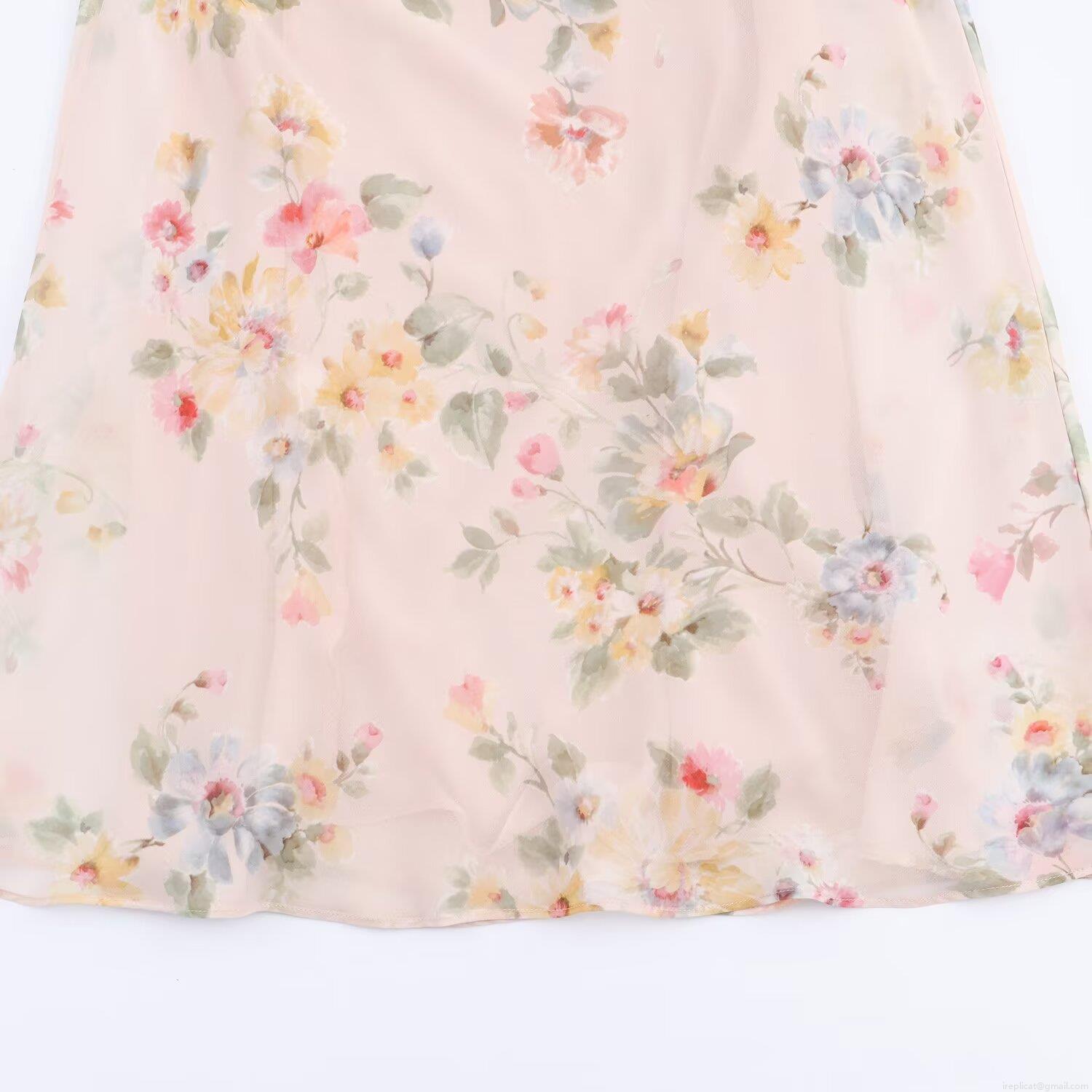 • Women's Sexy V-Neck Floral Print Midi Dress Elegant Chiffon Ruffle Sleeveless Slim Fit High Waist Pink A-Line Party Dress For Wedding Dating