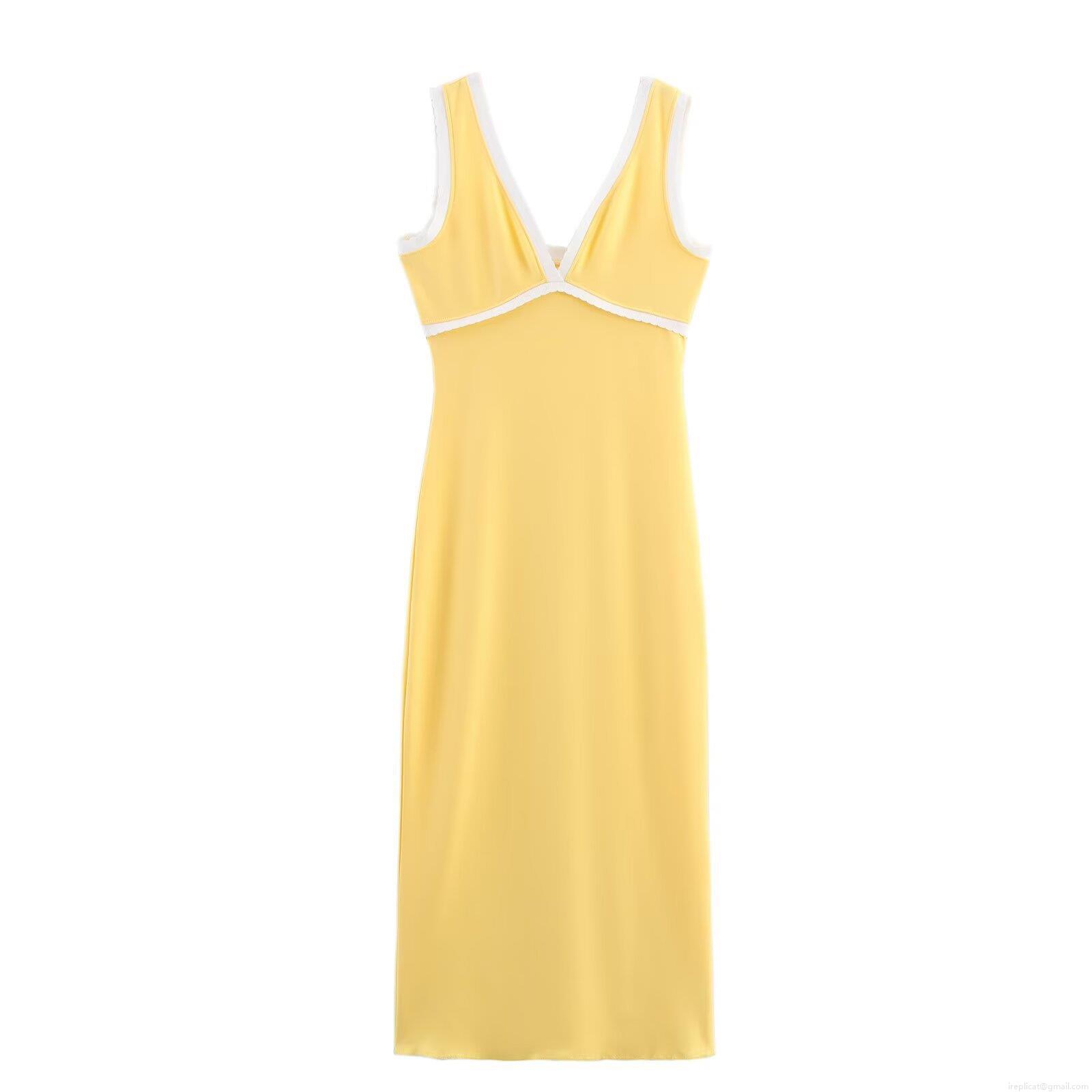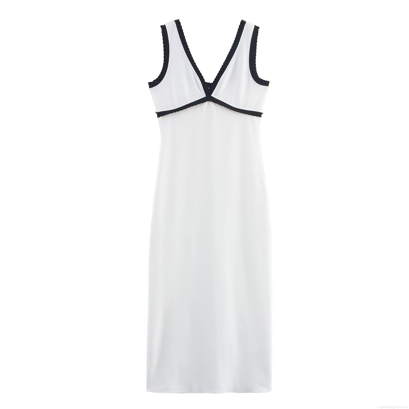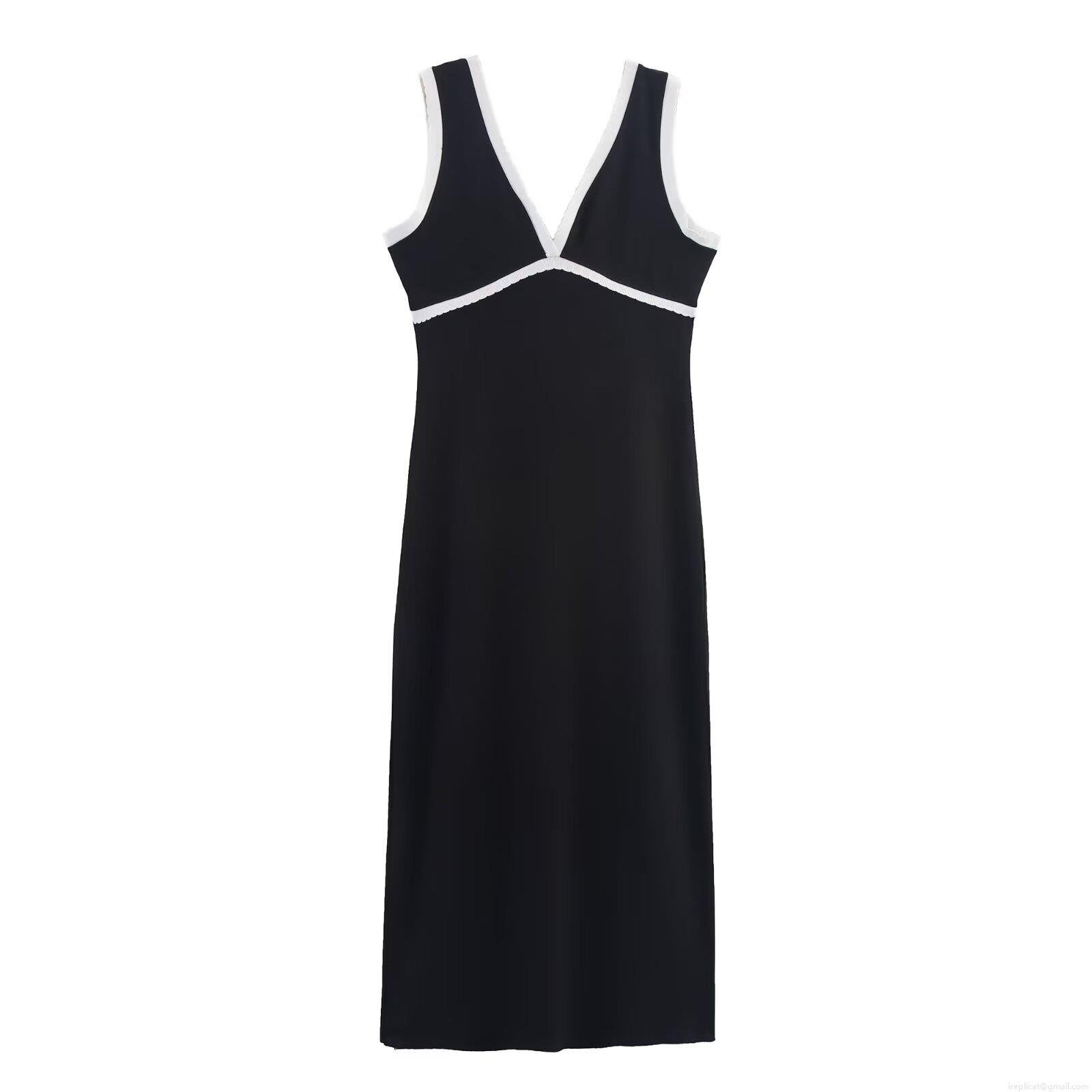 • Women's Sexy V-Neck Sleeveless Midi Dress Contrast Trim Slim Fit Polyester Patchwork Camisole Dress For Party Casual Streetwear