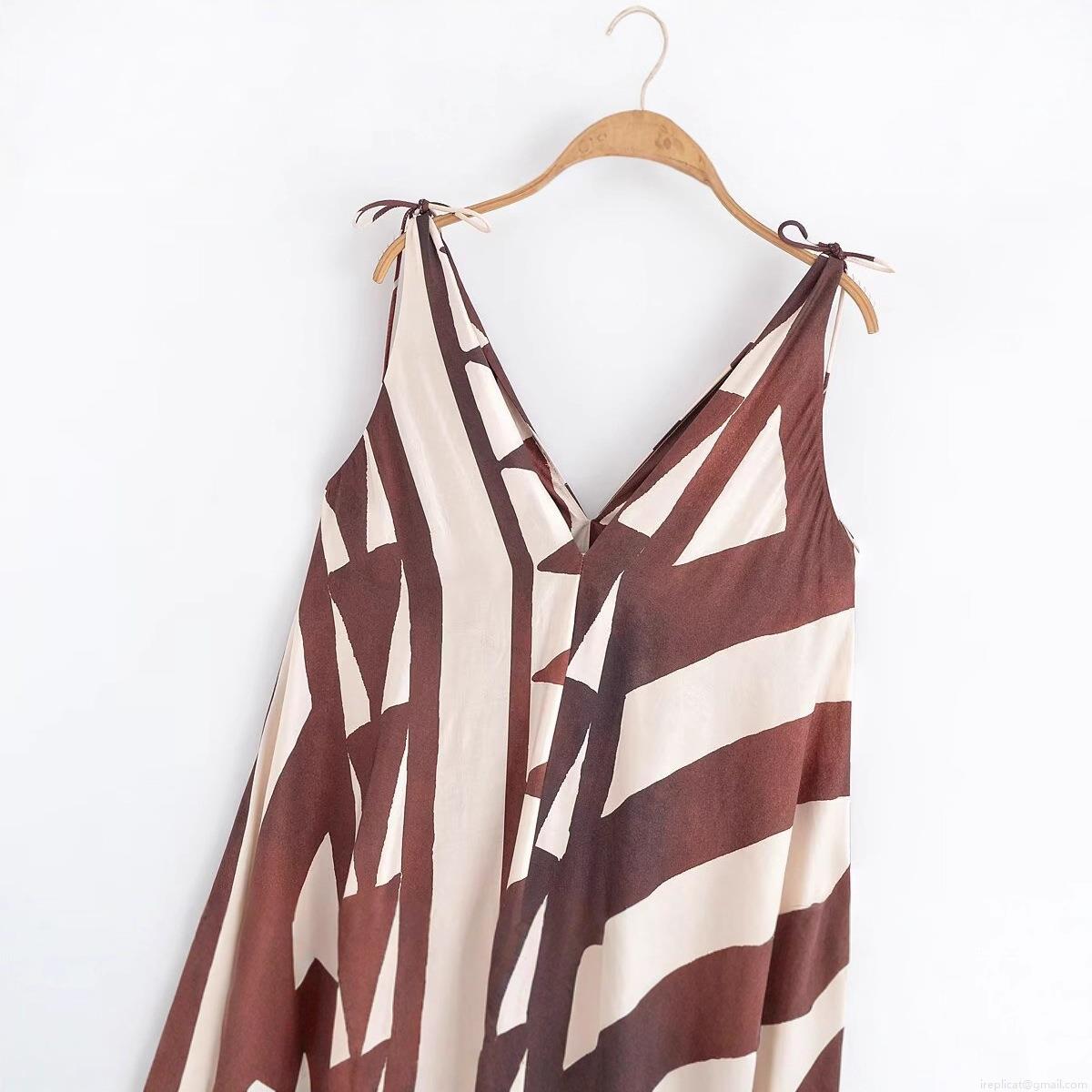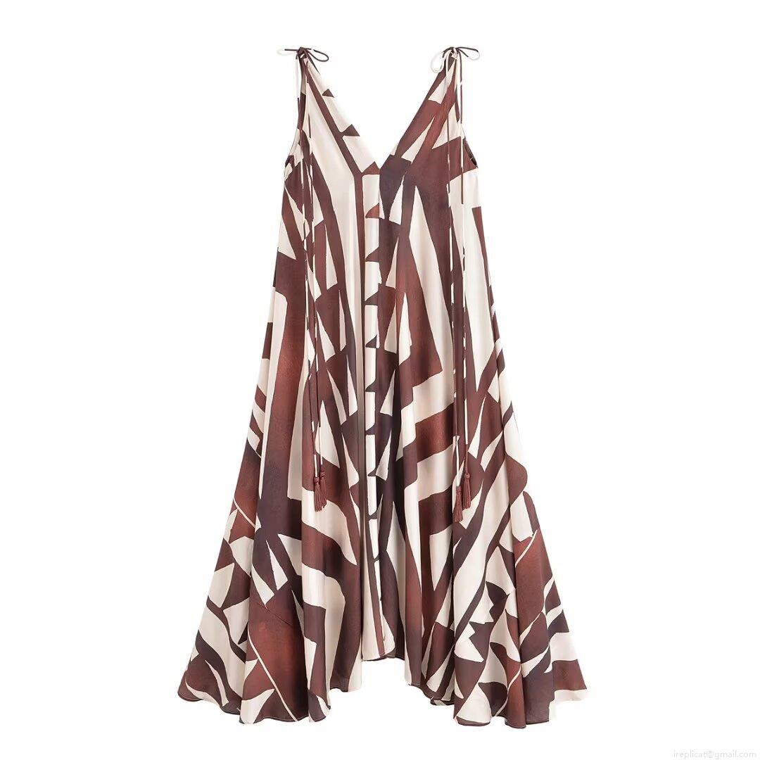 • Women's Sexy V-Neck Spaghetti Strap Dress Geometric Abstract Print Asymmetric Hem Midi Sun Dress With Tassel For Summer Beach Vacation Party Casual Dress Polyester