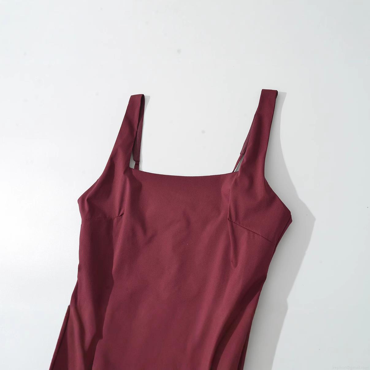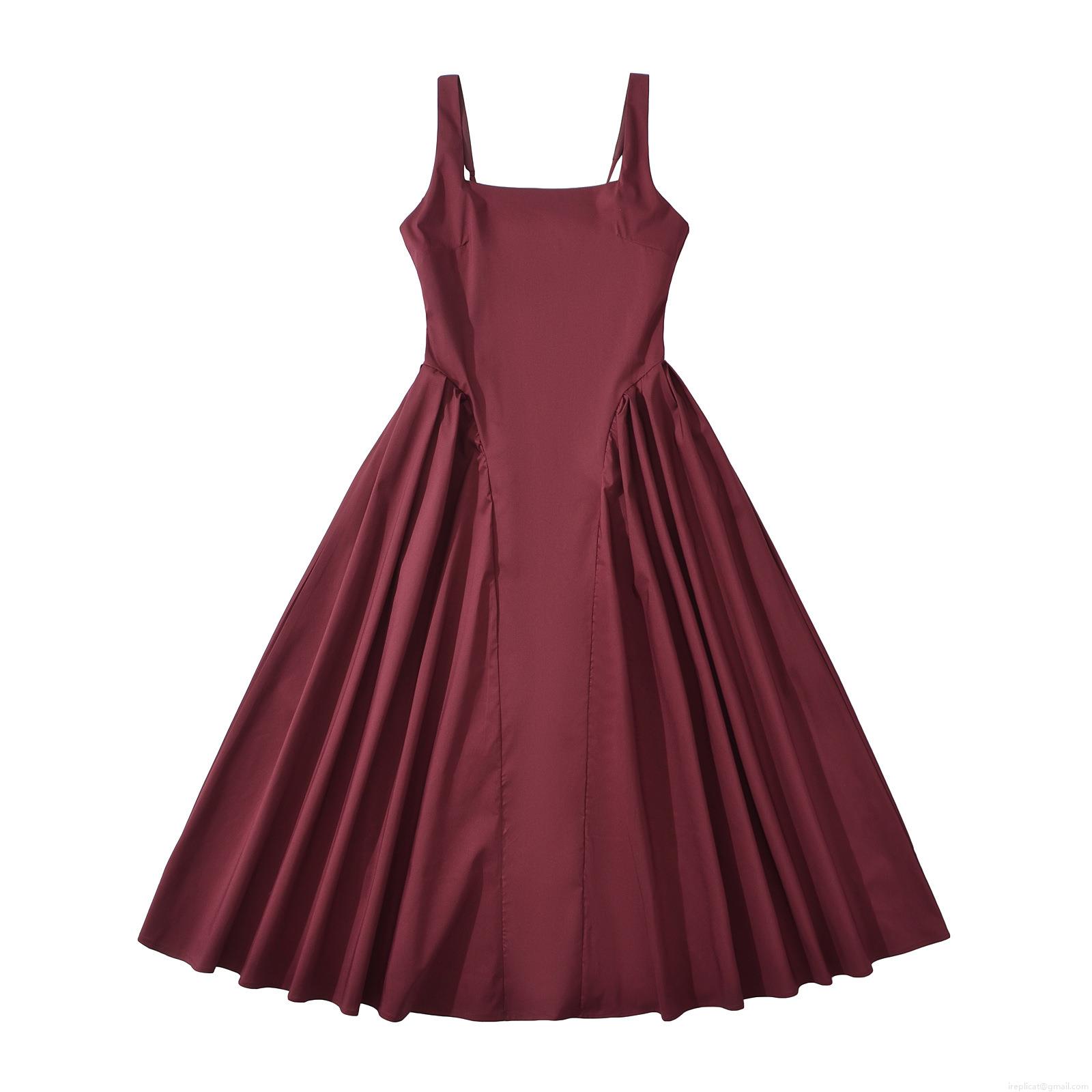 Women's Sexy Wine Red Midi A-Line Dress Square Neck Sleeveless Cotton Polyester Camisole Dress Summer Streetwear Party Outfits Lady Back Zipper Fashion