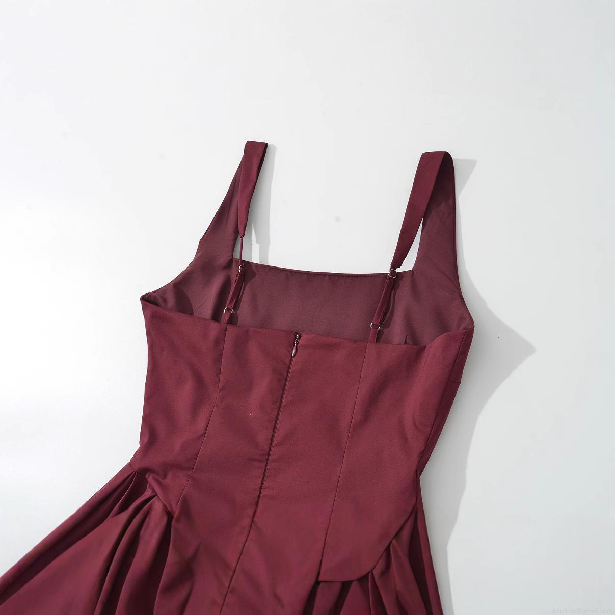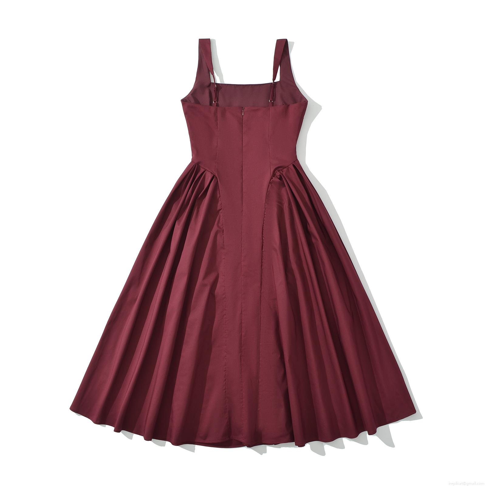 • Women's Sexy Wine Red Midi A-Line Dress Square Neck Sleeveless Cotton Polyester Camisole Dress Summer Streetwear Party Outfits Lady Back Zipper Fashion