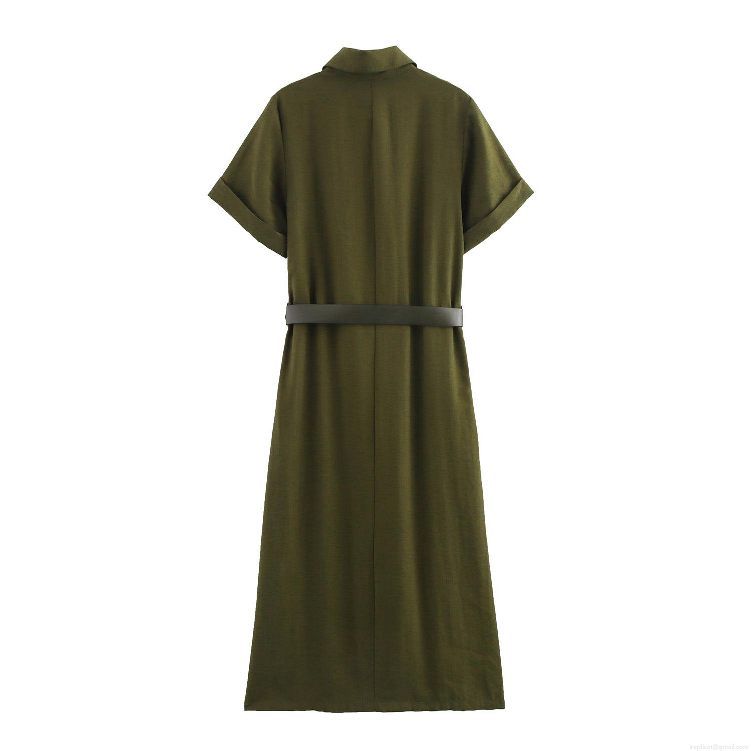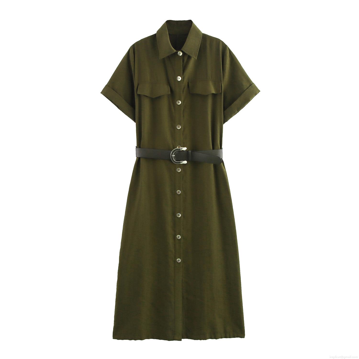 • Women's Short Sleeve Shirt Dress With Belt Elegant Lapel Single Breasted Midi Cargo Dress Solid Color Polyester Commuter Style Ladies Summer Fashion Outfit