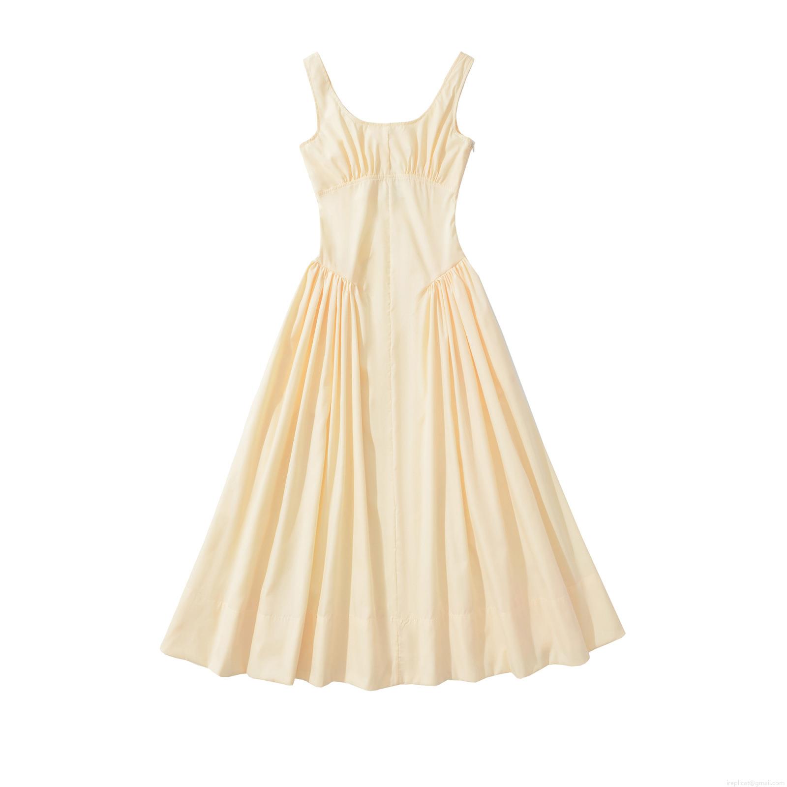 • Women's Simple Elegant Sleeveless Midi Dress Solid Color Pleated Large Swing A-Line Sundress With Pockets Summer Vacation Casual Dress