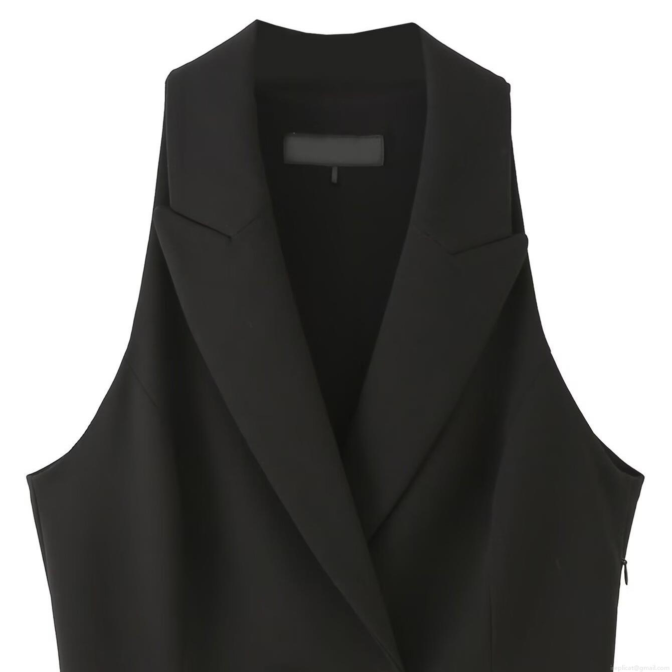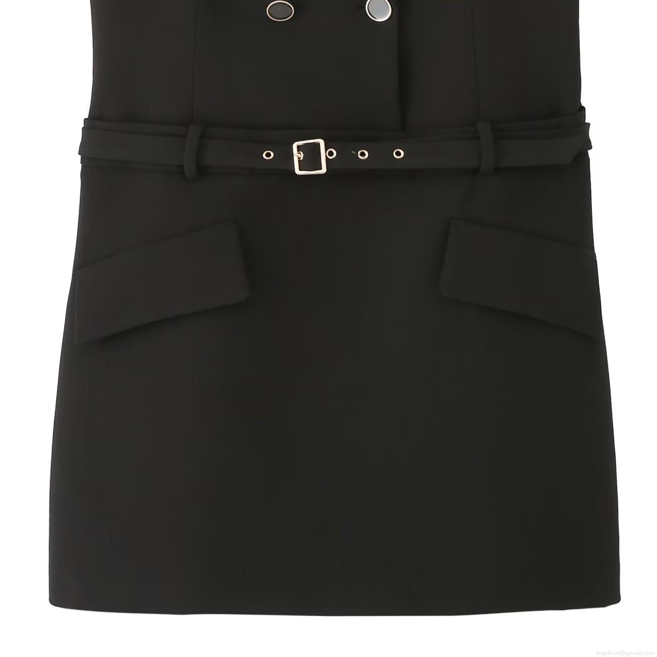 • Women's Sleeveless Blazer Dress Elegant Double Breasted Vest Dress With Belt Office Lady Solid Color Midi Dress 100% Polyester Outfit