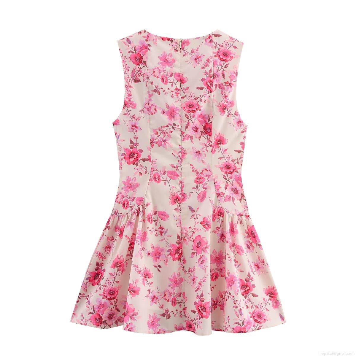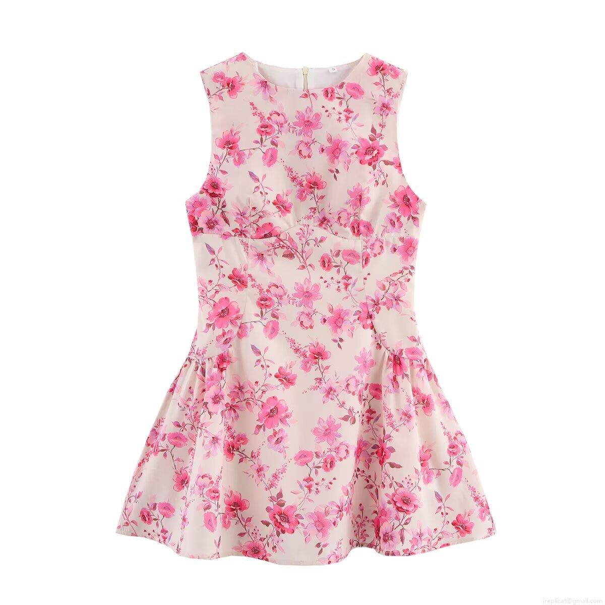 Women's Sleeveless Floral Print Midi Dress 100% Polyester Elegant A-Line Back Zipper Summer Casual Crew Neck Sundress for Women Holiday Party Fashion