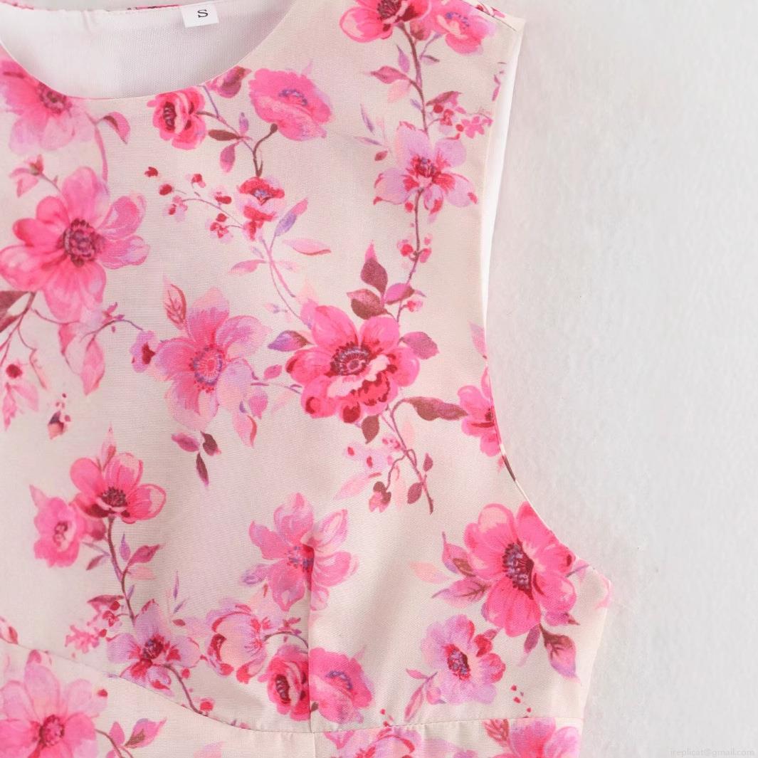 • Women's Sleeveless Floral Print Midi Dress 100% Polyester Elegant A-Line Back Zipper Summer Casual Crew Neck Sundress for Women Holiday Party Fashion