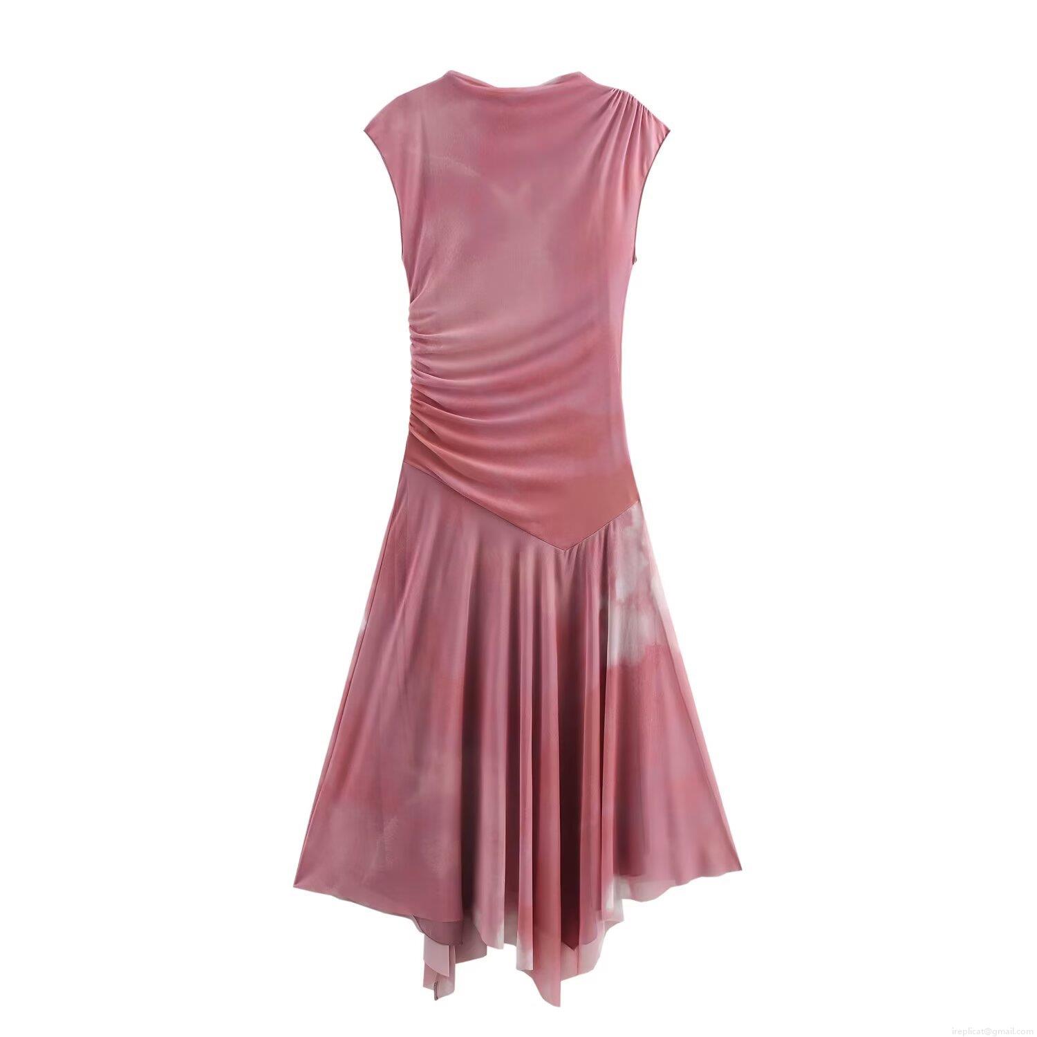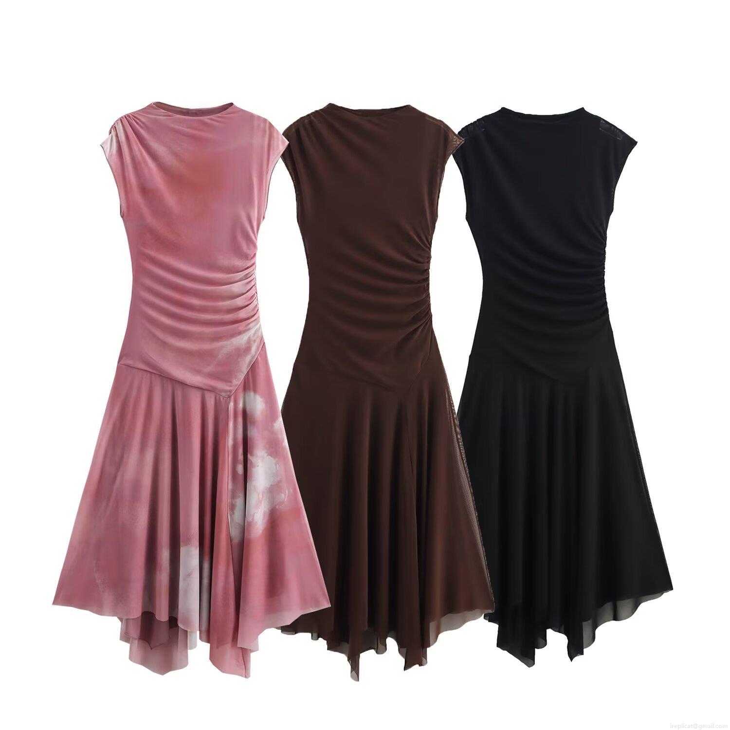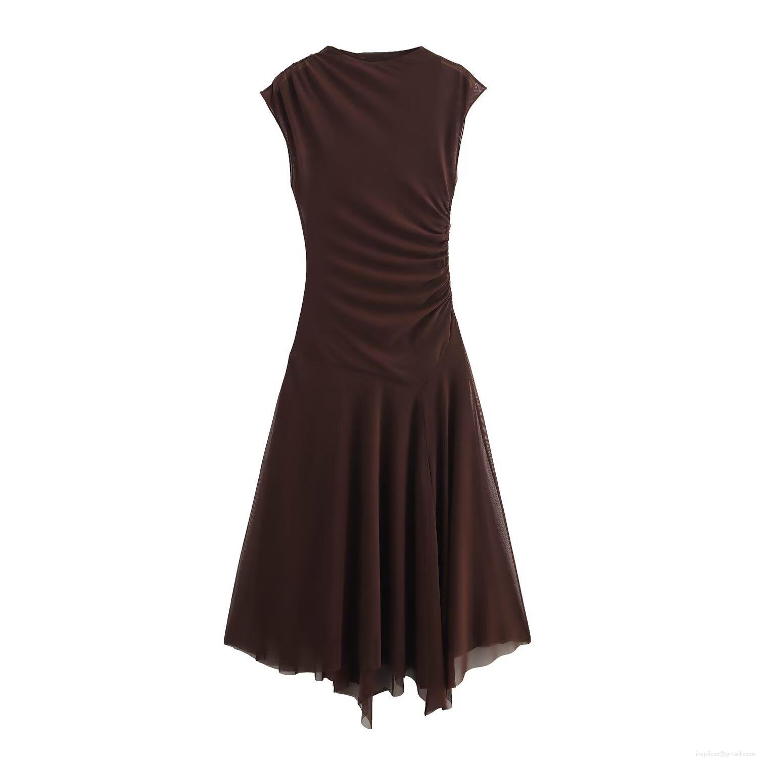 • Women's Sleeveless Mesh Midi Dress Mock Neck Summer Ruched Asymmetric Hem Polyester Streetwear Elegant Slim Fit Party Dresses For Women