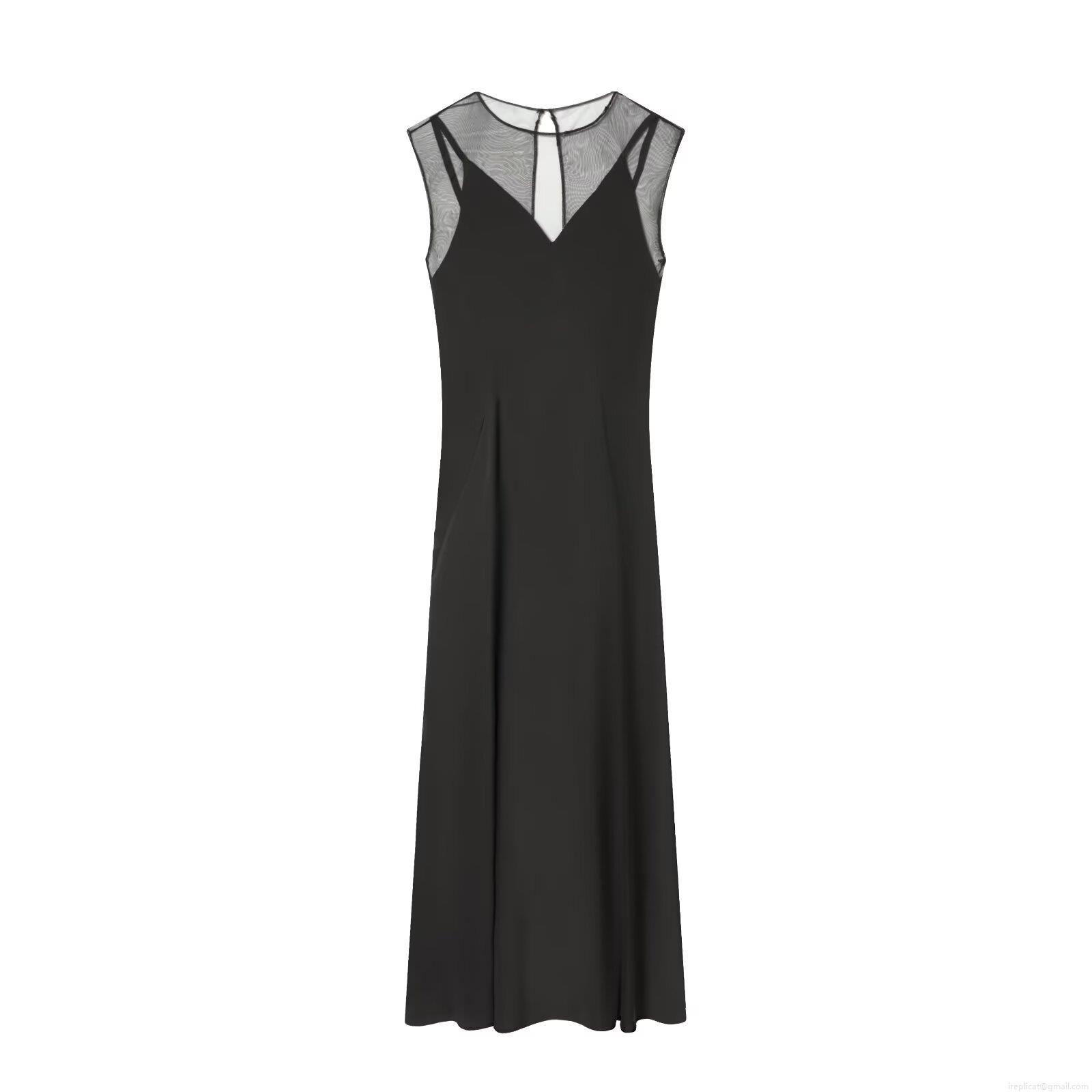 • Women's Sleeveless Mesh Splicing Perspective Dress Elegant Round Neck Midi Little Black Dress For Evening Party Casual Street Style