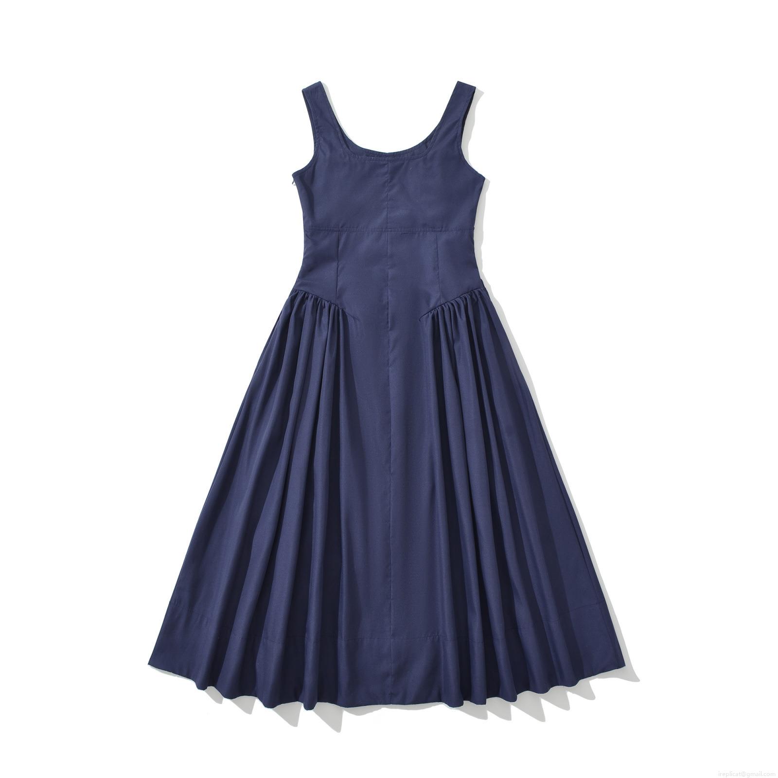 • Women's Sleeveless Midi Dress Elegant Backless A-Line Pleated Summer Casual Dress With Pockets Polyester Round Neck Streetwear Solid Color Party Clothing