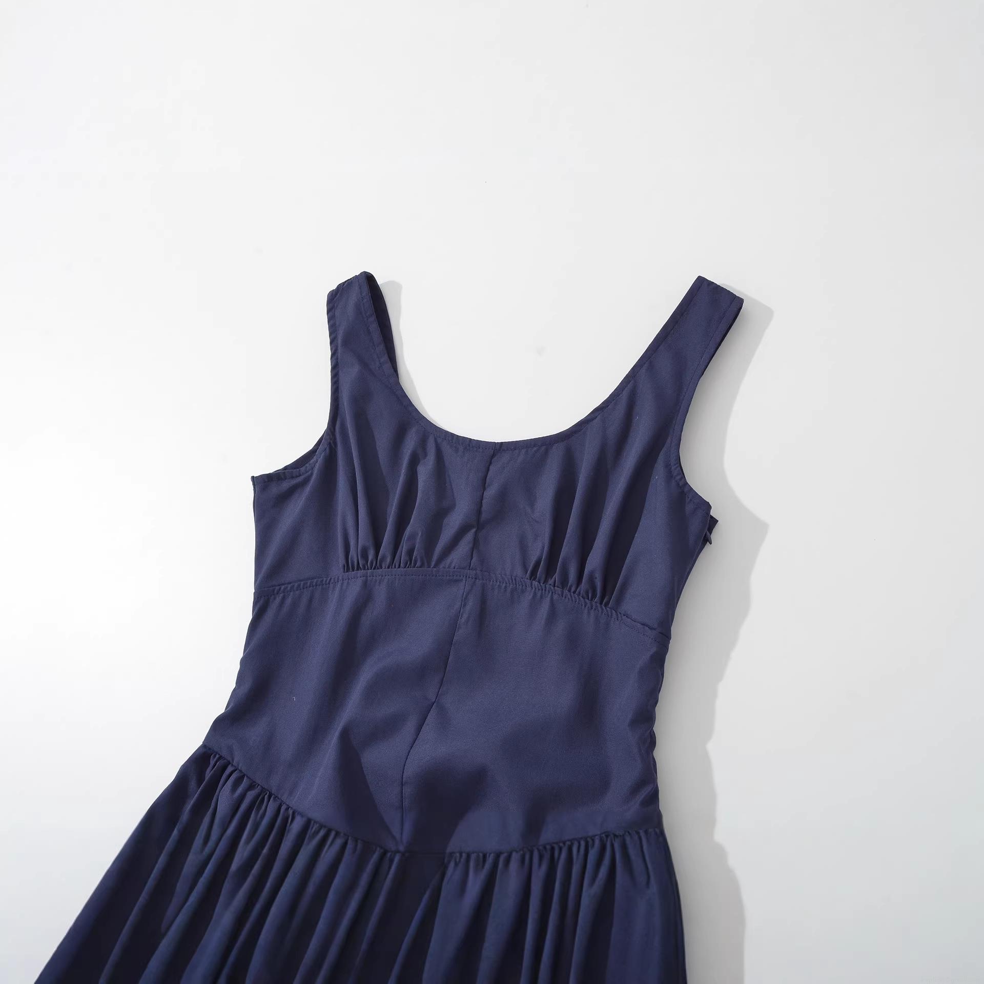 Women's Sleeveless Midi Dress Elegant Backless A-Line Pleated Summer Casual Dress With Pockets Polyester Round Neck Streetwear Solid Color Party Clothing