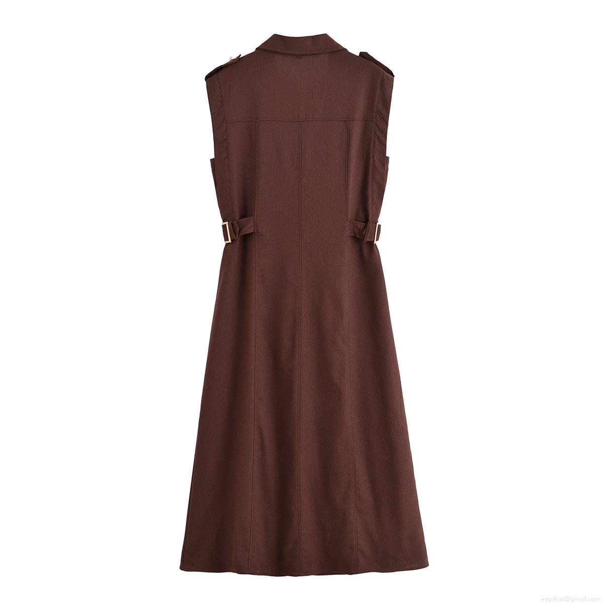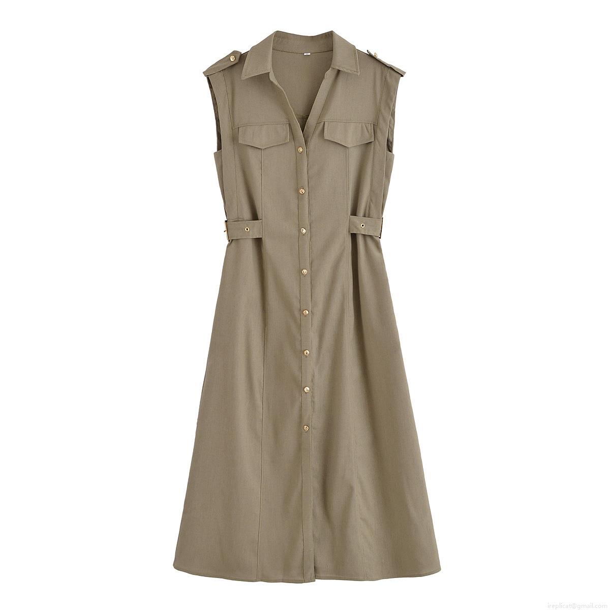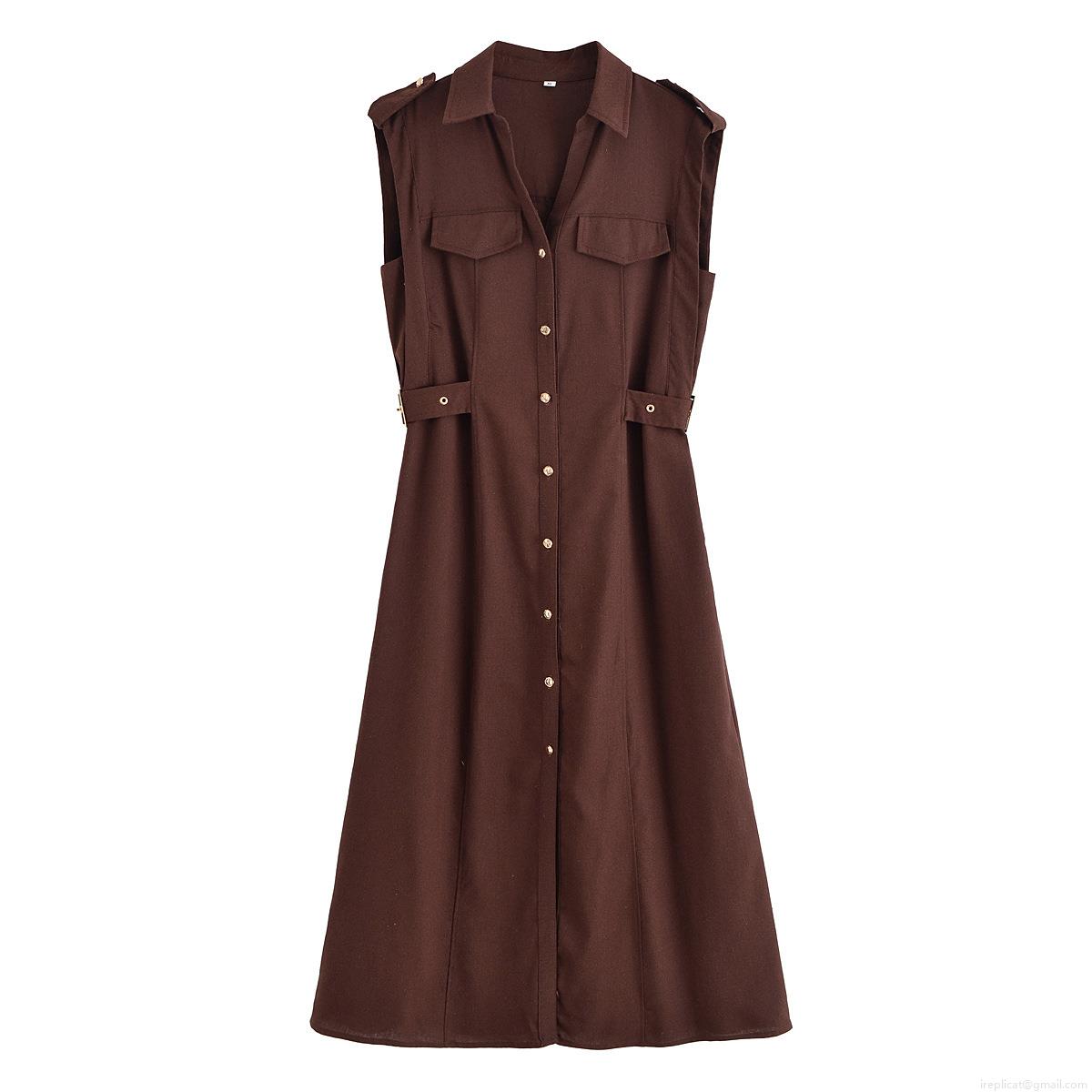 • Women's Sleeveless Midi Shirt Dress Button Down Workwear Style With Pockets Lapel Collar Solid Color Slim Fit Polyester Dress For Summer Casual Daily Office