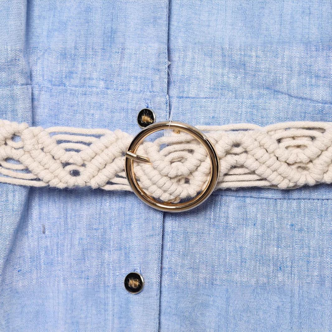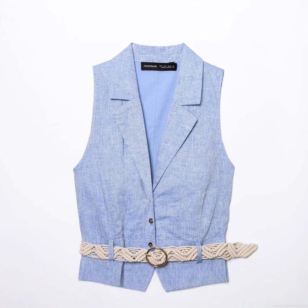 • Women's Sleeveless Polo Collar Linen Blend A-Line Midi Dress With Woven Belt Summer Casual Single Breasted Light Blue Solid Color Fashion Vest Dress